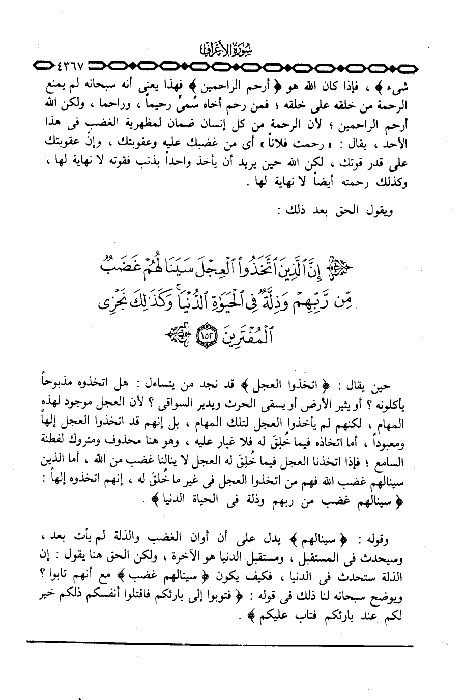 حين يقال: {اتخذوا العجل} قد نجد من يتساءل: هل اتخذوه مذبوحاً يأكلونه؟ أو يثير الأرض أو يسقي الحرث ويدير السواقي؟ لأن العجل موجود لهذه المهام، لكنهم لم يأخذوا العجل لتلك المهام، بل إنهم قد اتخذوا العجل إلهاً ومعبوداً، أما اتخاذه فيما خُلِقَ له فلا غبار عليه، وهو هنا محذوف ومتروك لفطنة السامع؛ فإذا اتخذنا العجل فيما خُلِقَ له العجل لا ينالنا غضب من الله، أما الذين سينالهم غضب الله فهم من اتخذوا العجل في غير ما خُلِقَ له، إنهم اتخذوه إلهاً: {سَيَنَالُهُمْ غَضَبٌ مِّن رَّبِّهِمْ وَذِلَّةٌ فِي الحياة الدنيا} .