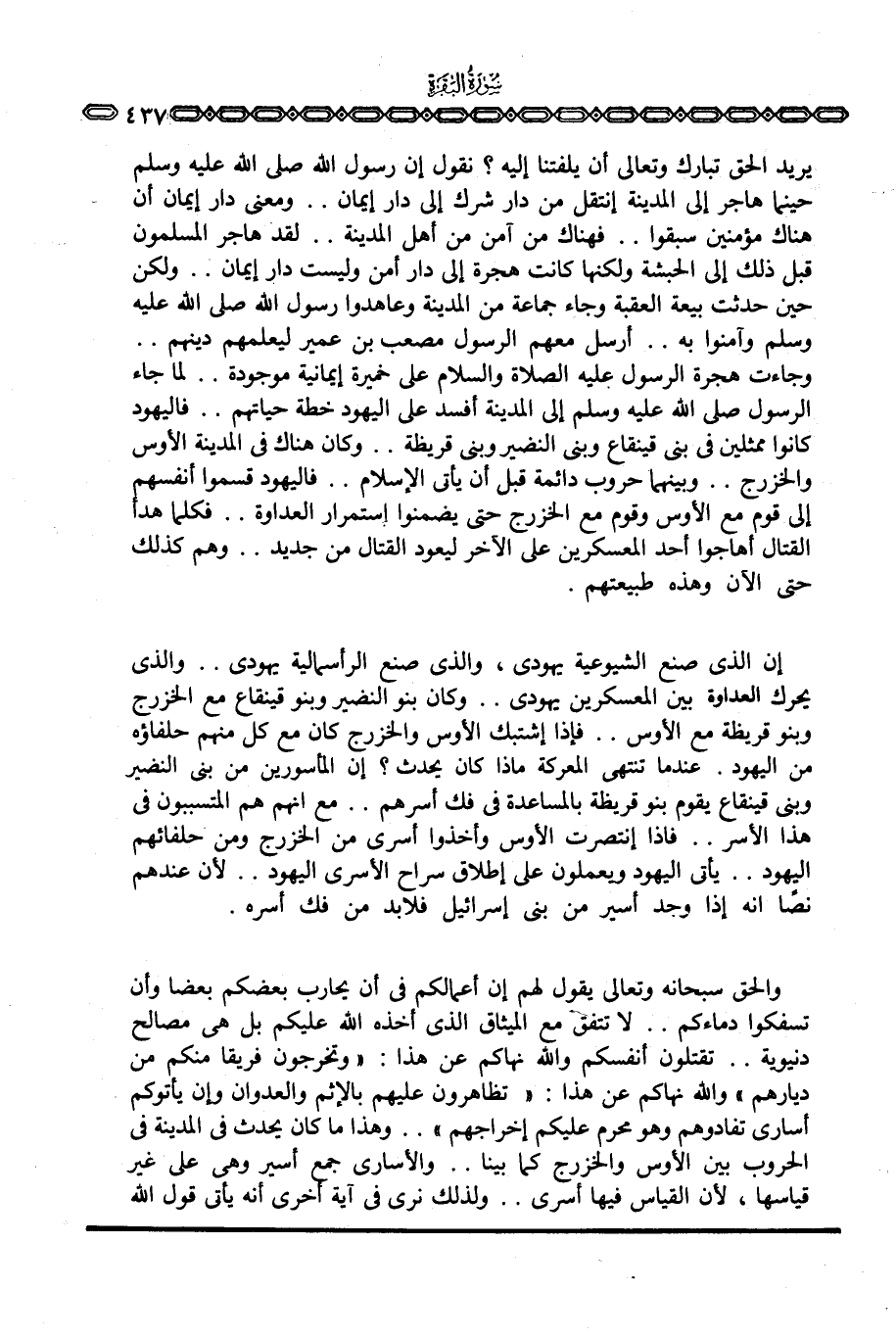 إن الذي صنع الشيوعية يهودي، والذي صنع الرأسمالية يهودي. . والذي يحرك العداوة بين المعسكرين يهودي. . وكان بنو النضير وبنو قينقاع مع الخزرج وبنو قريظة مع الأوس. . فإذا إشتبك الأوس والخزرج كان مع كل منهم حلفاؤه من اليهود. عندما تنتهي المعركة ماذا كان يحدث؟ إن المأسورين من بني النضير وبني قينقاع يقوم بنو قريظة بالمساعدة في فك أسرهم. . مع أنهم هم المتسببون في هذا الأسر. . فإذا إنتصرت الأوس وأخذوا أسرى من الخرج ومن حلفائهم اليهود. . يأتي اليهود ويعملون على إطلاق سراح الأسرى اليهود. . لأن عندهم نصاً أنه إذا وجد أسير من بني إسرائيل فلابد من فك أسره.