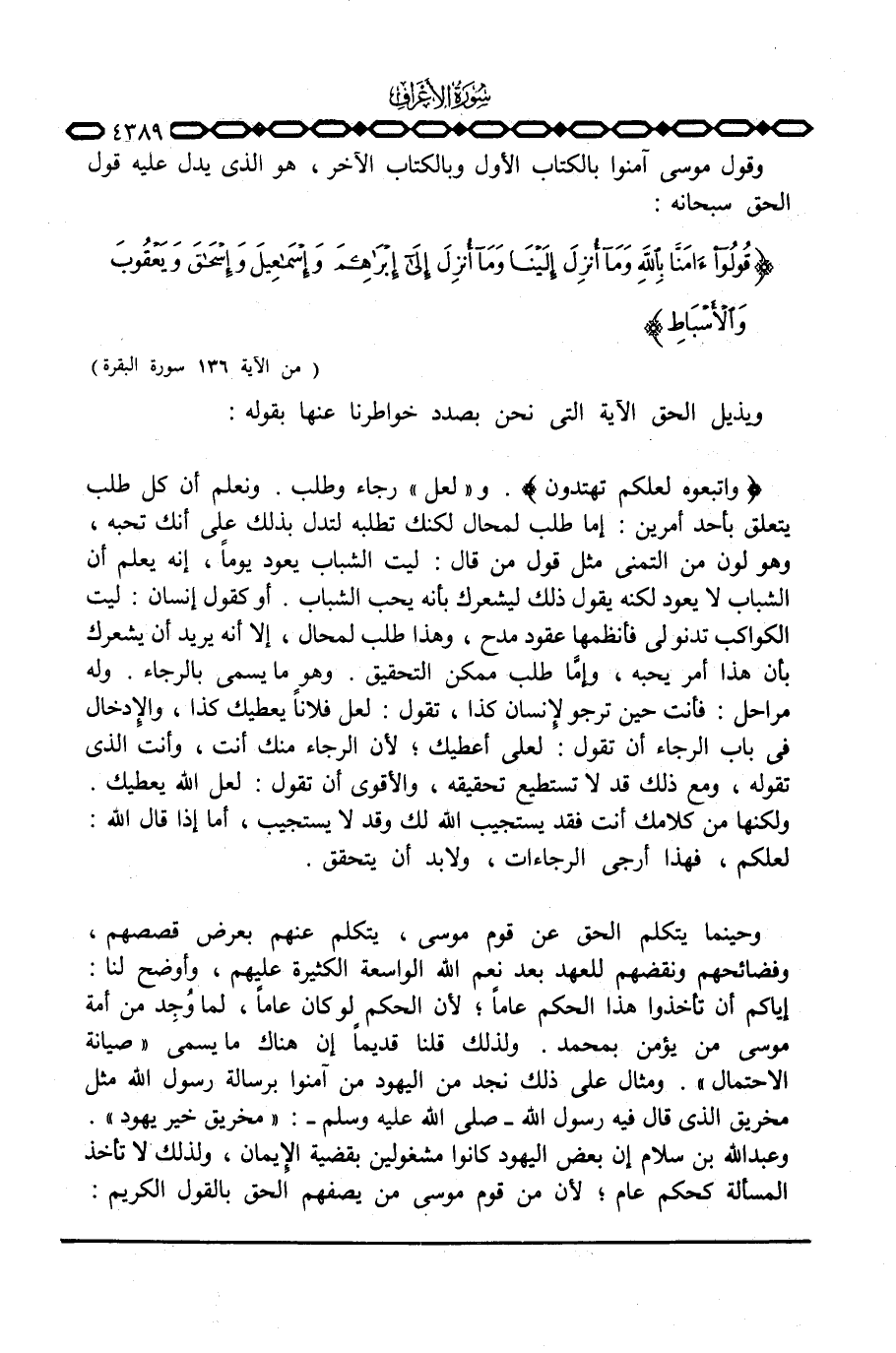 وقول موسى آمنوا بالكتاب الآخر، هو الذي يدل عليه قول الحق سبحانه: {قولوا آمَنَّا بالله وَمَآ أُنْزِلَ إِلَيْنَا وَمَآ أُنزِلَ إلى إِبْرَاهِيمَ وَإِسْمَاعِيلَ وَإِسْحَاقَ وَيَعْقُوبَ والأسباط ... } [البقرة: 136]