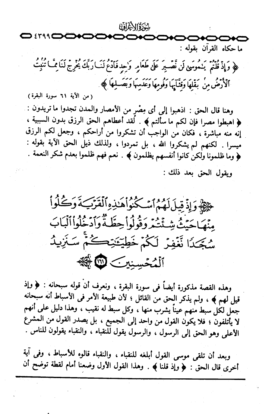وهذه القصة مذكورة أيضاً في سورة البقرة، ونعرف أن قوله سبحانه: {وَإِذْ قِيلَ لَهُمُ} ، ولم يذكر الحق من القائل؛ لأن طبيعة الأمر في الأسباط أنه سبحانه جعل لكل سبط منهم عيناً يشرب منها، وكل سبط له نقيب، وهذا دليل على أنهم لا يأتلفون؛ فلا يكون القول من واحد إلى الجميع، بل يصدر القول من المشرع الأعلى وهو الحق إلى الرسول، والرسول يقول للنقباء، والنقباء يقولون للناس.