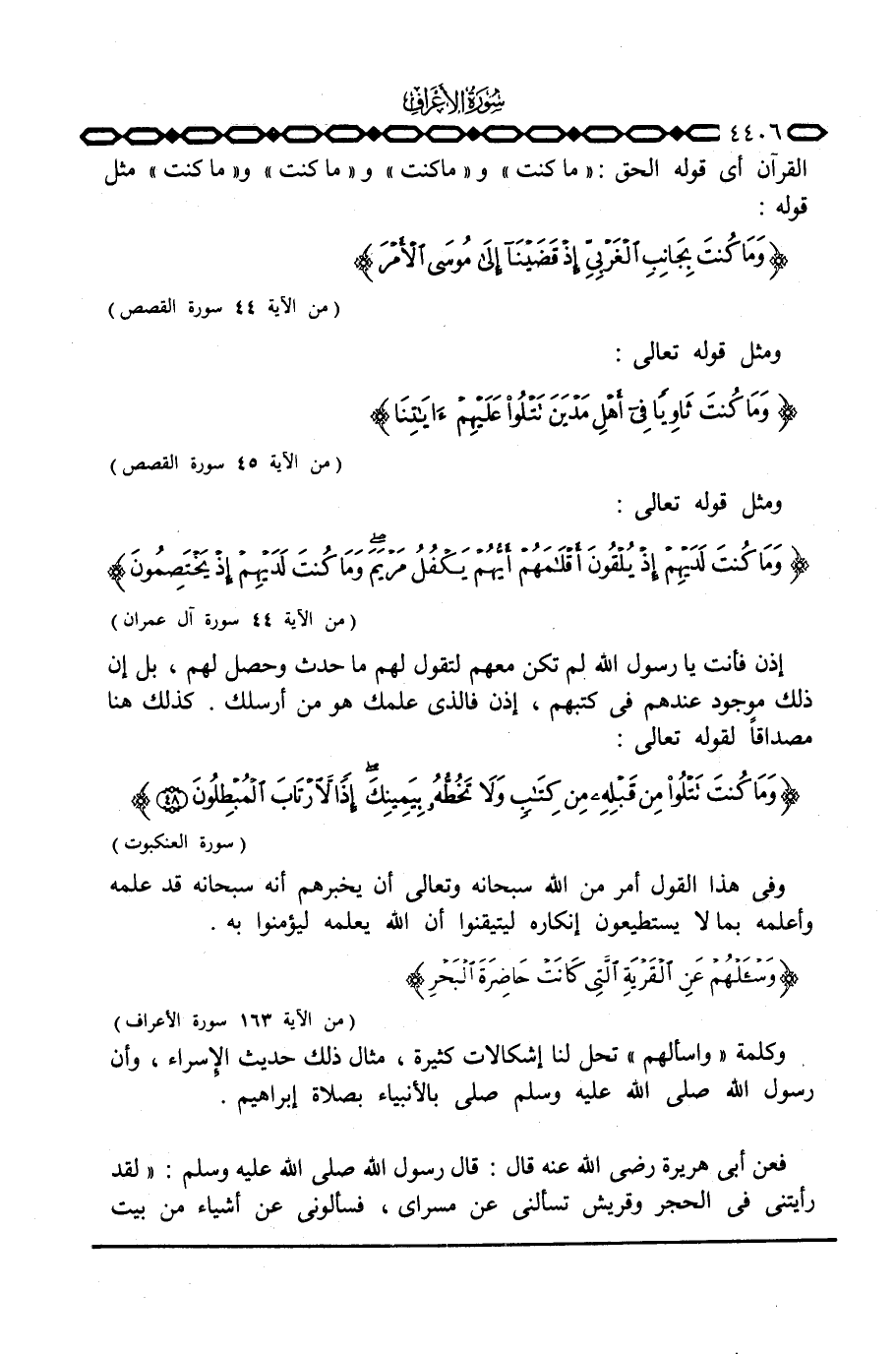 القرآن أي قوله الحق: «ما كنت» و «ماكنت» و «ما كنت» و «ما كنت» مثل قوله: {وَمَا كُنتَ بِجَانِبِ الغربي إِذْ قَضَيْنَآ إلى مُوسَى الأمر ... } [القصص: 44]