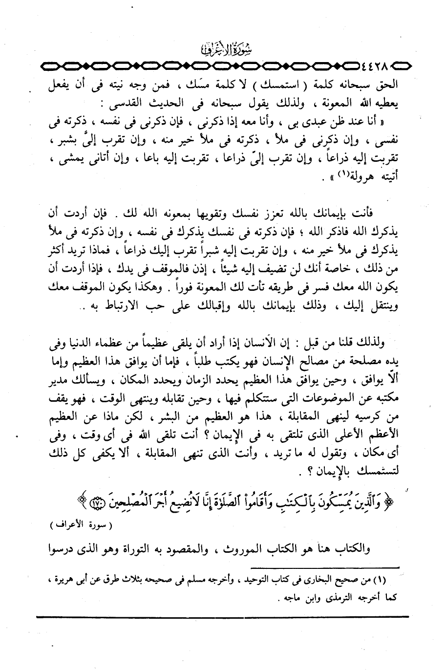 {والذين يُمَسِّكُونَ بالكتاب وَأَقَامُواْ الصلاة إِنَّا لاَ نُضِيعُ أَجْرَ المصلحين} [الأعراف: 170]