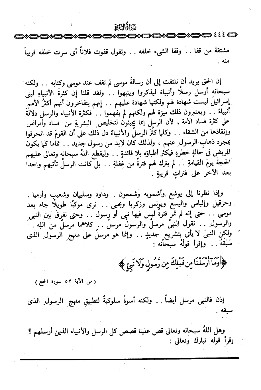 إن الحق يريد أن يلفتنا إلى أن رسالةَ موسى لم تقف عند موسى وكتابه. . ولكنه سبحانه أرسل رسلاً وأنبياءَ ليذكروا وينبهوا. . ولقد قلنا إن كثرةَ الأنبياءِ لبني إسرائيلَ ليست شهادة لهم ولكنها شهادة عليهم. . إنهم يتفاخرون أنهم أكثرُ الأممِ أنبياءً. . ويعتبرون ذلك ميزة لهم ولكنهم لم يفهموا. . فكثرة الأنبياء والرسل دلالةَ على كثرة فساد الأمة، لأن الرسل إنما يجيئون لتخليص البشريةِ من فساد وأمراض وإنقاذها من الشقاء. . وكلما كثُرَ الرسلُ والأنبياءُ دل ذلك على أن القومَ قد انحرفوا بمجرد ذهابِ الرسولِ عنهم، ولذلك كان لابد من رسول جديد. . تماما كما يكون المريض في حالةٍ خطرةٍ فيكثر أطباؤه بلا فائدةٍ. . وليقطع اللهُ سبحانه وتعالى عليهم الحجةَ يومَ القيامةِ.