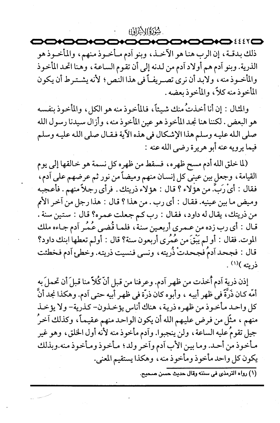 ذلك بدقة، إن الرب هنا هو الآخذ، وبنو آدم مأخوذ منهم، والمأخوذ هو الذرية. وبنو آدم هم أولاد آدم من لدنه إلى أن تقوم الساعة، وهنا اتحد المأخوذ والمأخوذ منه، ولابد أن نرى تصريفاً في هذا النص؛ لأنه يشترط أن يكون المأخوذ منه كلاً، والمأخوذ بعضه.