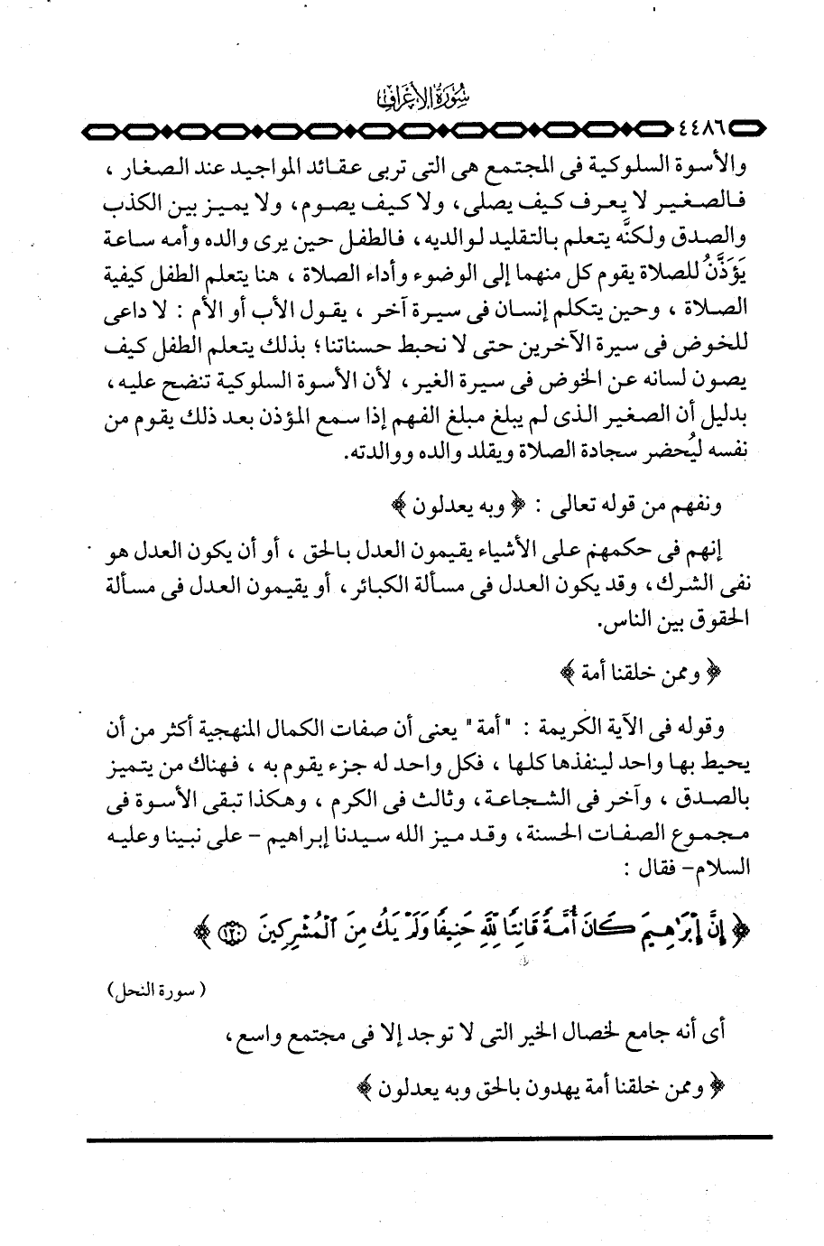 أي أنه جامع لخصال الخير التي لا توجد إلا في مجتمع واسع، {وَمِمَّنْ خَلَقْنَآ أُمَّةٌ يَهْدُونَ بالحق وَبِهِ يَعْدِلُونَ}