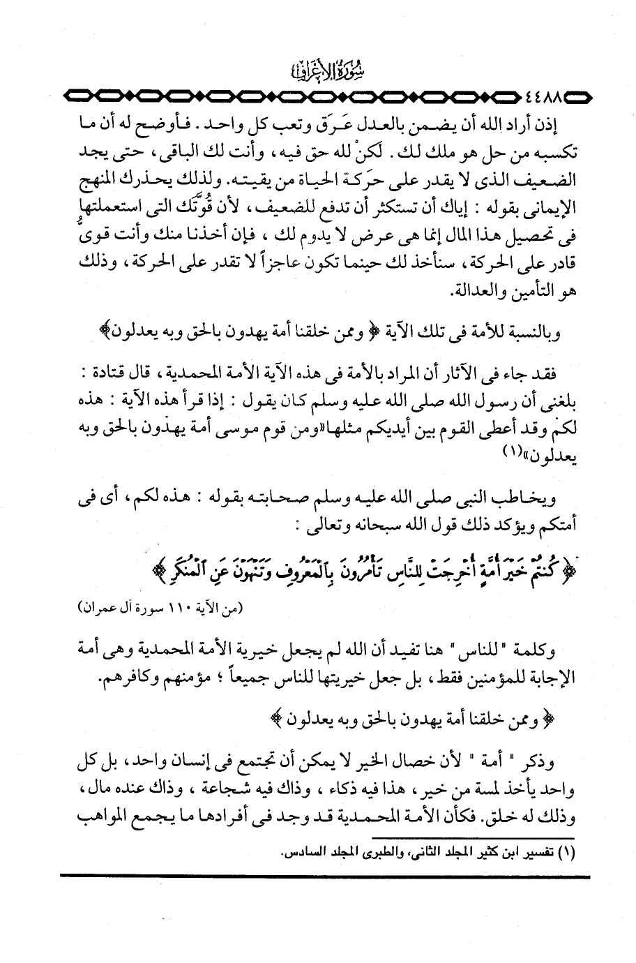 وبالنسبة للأمة في تلك الآية {وَمِمَّنْ خَلَقْنَآ أُمَّةٌ يَهْدُونَ بالحق وَبِهِ يَعْدِلُونَ}