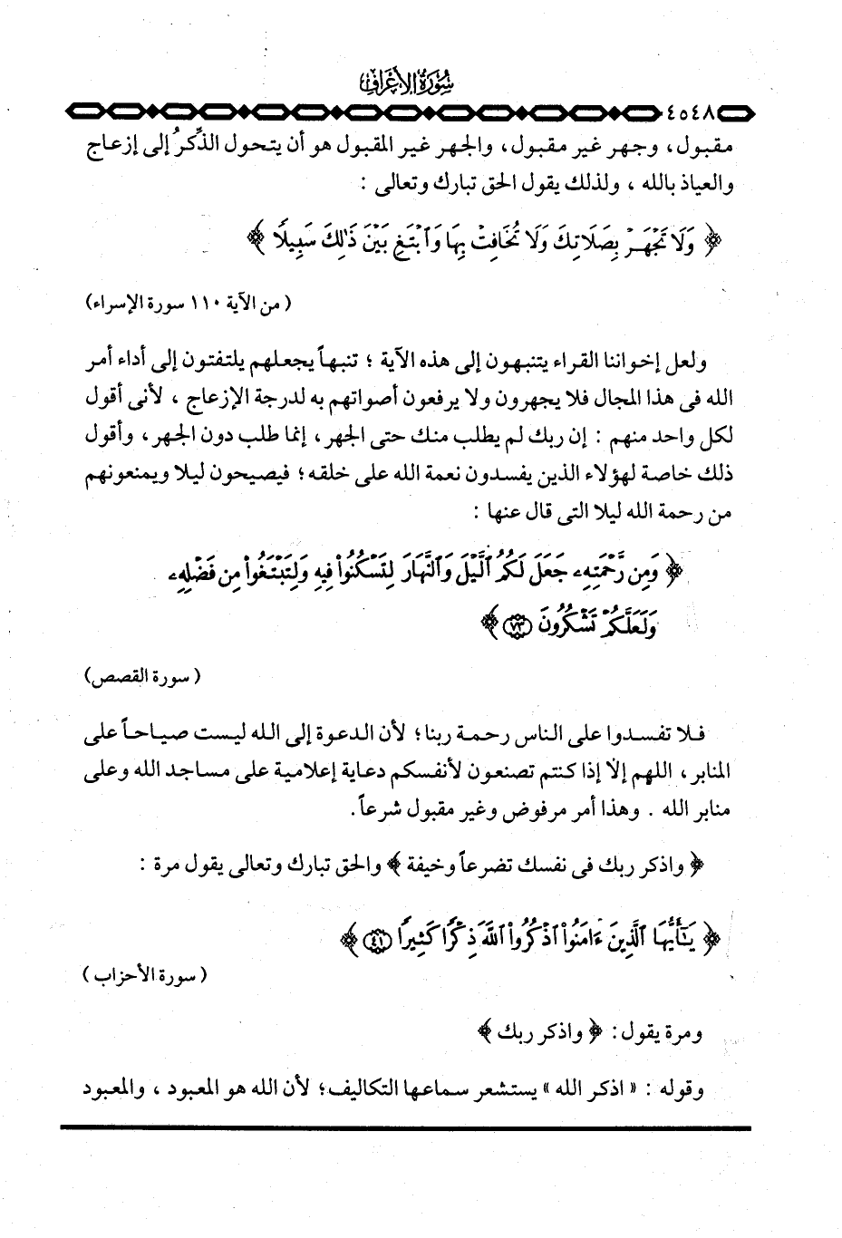 ولعل إخواننا القراء يتنبهون إلى هذه الآية؛ تنبهاً يجعلهم يلتفتون إلى أداء أمر الله في هذا المجال فلا يجهرون ولا يرفعون أصواتهم به لدرجة الإزعاج، لأني أقول لكل واحد منهم: إن ربك لم يطلب منك حتى الجهر، إنما طلب دون الجهر، وأقول ذلك خاصة لهؤلاء الذين يفسدون نعمة الله على خلقه؛ فيصيحون ليلا ويمنعونهم من رحمة الله ليلا التي قال عنها: {وَمِن رَّحْمَتِهِ جَعَلَ لَكُمُ الليل والنهار لِتَسْكُنُواْ فِيهِ وَلِتَبتَغُواْ مِن فَضْلِهِ وَلَعَلَّكُمْ تَشْكُرُونَ} [القصص: 73] .