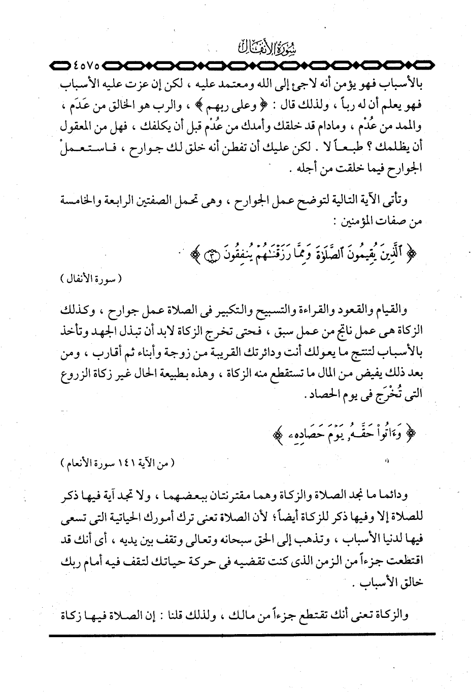 وتأتي الآية التالية لتوضح عمل الجوارح، وهي تحمل الصفتين الرابعة والخامسة من صفات المؤمنين: {الذين يُقِيمُونَ الصلاة وَمِمَّا رَزَقْنَاهُمْ يُنفِقُونَ} [الأنفال: 3] .