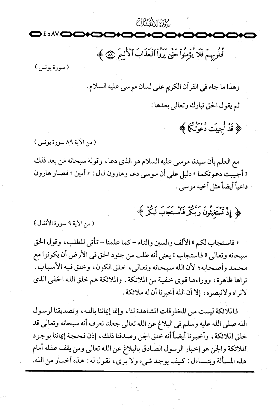 مع العلم بأن سيدنا موسى عليه السلام هو الذي دعا، وقوله سبحانه من بعد ذلك {أُجِيبَتْ دَّعْوَتُكُمَا} دليل على أن موسى دعا وهارون قال: «آمين» فصار هارون داعياً أيضاً مثل أخيه موسى. {إِذْ تَسْتَغِيثُونَ رَبَّكُمْ فاستجاب لَكُمْ} [الأنفال: 9] .