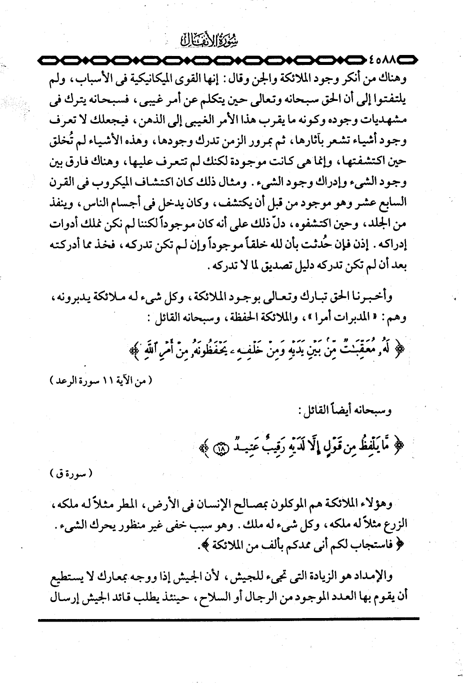 وهؤلاء الملائكة هم الموكلون بمصالح الإنسان في الأرض، المطر مثلاً له ملكه، الزرع مثلاً له ملكه، وكل شيء له ملك. وهو سبب خفي غير منظور يحرك الشيء. {فاستجاب لَكُمْ أَنِّي مُمِدُّكُمْ بِأَلْفٍ مِّنَ الملائكة} .