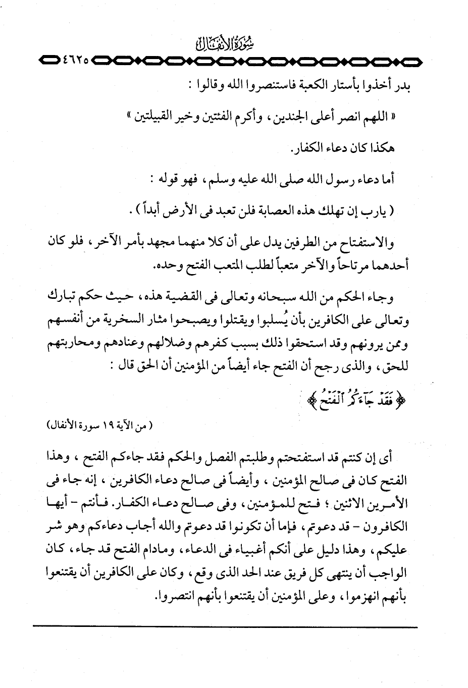 أي إن كنتم قد استفتحتم وطلبتم الفصل والحكم فقد جاءكم الفتح، وهذا الفتح كان في صالح المؤمنين، وأيضاً في صالح دعاء الكافرين، إنه جاء في الأمرين الاثنين؛ فتح للمؤمنين، وفي صالح دعاء الكفار. فأنتم - أيها الكافرون - قد دعوتم، فإما أن تكونوا قد دعوتم والله أجاب دعاءكم وهو شر عليكم، وهذا دليل على أنكم أغبياء في الدعاء، وما دام الفتح قد جاء، كان الواجب أن ينتهي كل فريق عند الحد الذي وقع، وكان على الكافرين أن يقتنعوا بأنهم انهزموا، وعلى المؤمنين أن يقتنعوا بأنهم انتصروا.