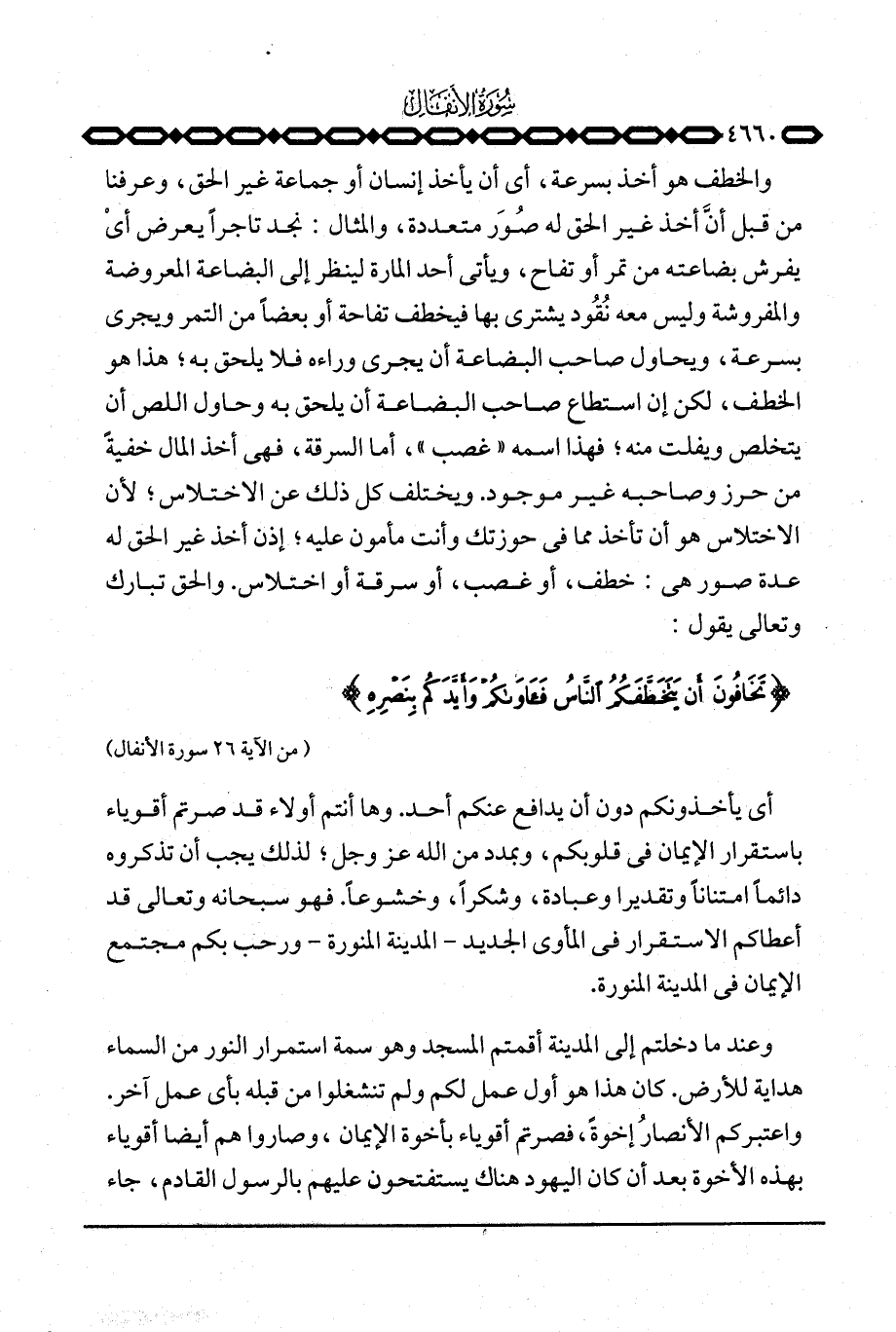 وعندما دخلتم إلى المدينة أقمتم المسجد وهو سمة استمرار النور من السماء هداية للأرض. كان هذا هو أول عمل لكم ولم تنشغلوا من قبله بأي عمل آخر. واعتبركم الأنصارُ إخوةً، فصرتم أقوياء بأخوة الإيمان، وصاروا هم أيضا أقوياء بهذه الأخوة بعد أن كان اليهود هناك يستفتحون عليهم بالرسول القادم، جاء