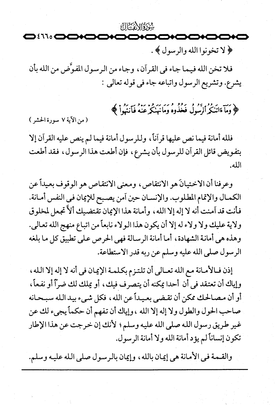 فلله أمانة فيما نص عليها قرآناً، وللرسول أمانة فيما لم ينص عليه القرآن إلا بتفويض قائل القرآن للرسول بأن يشرع، فإن أطعت هذا الرسول، فقد أطعت الله.