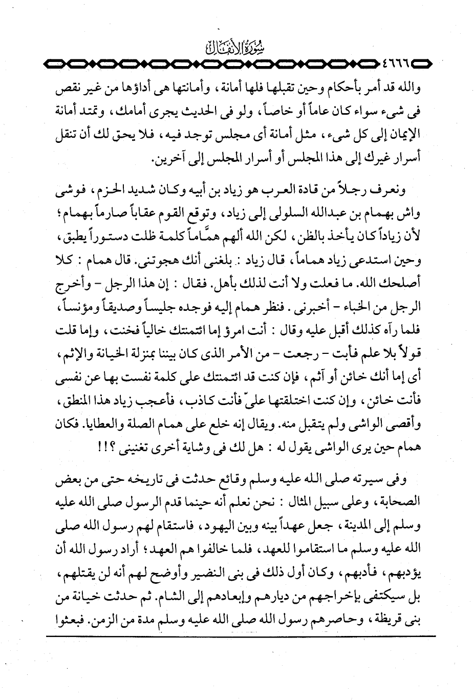 والله قد أمر بأحكام وحين تقبلها فلها أمانة، وأمانتها هي أداؤها من غير نقص في شيء سواء كان عاماً أو خاصاً، ولو في الحديث يجري أمامك، وتمتد أمانة الإيمان إلى كل شيء، مثل أمانة أي مجلس توجد فيه، فلا يحق لك ان تنقل أسرار غيرك إلى هذا المجلس أو أسرار المجلس إلى آخرين.