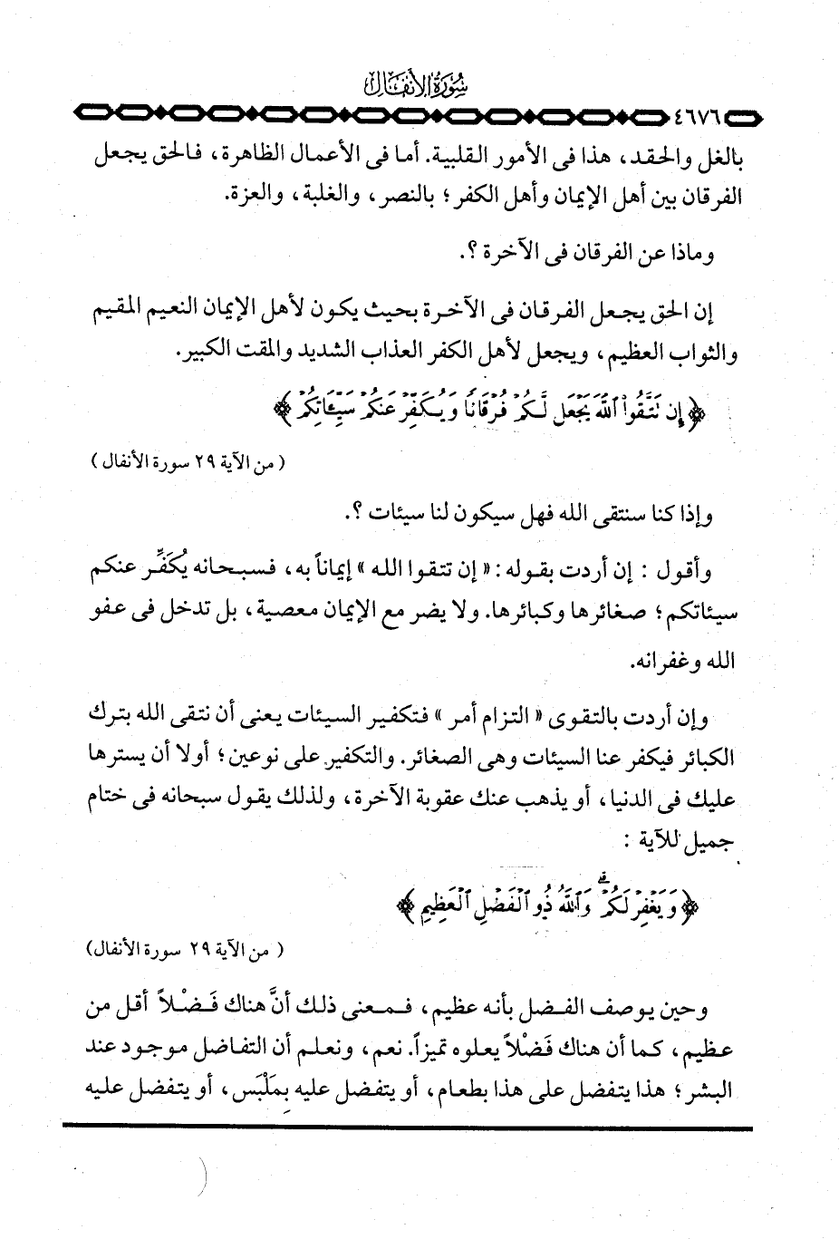 {إِن تَتَّقُواْ الله يَجْعَل لَّكُمْ فُرْقَاناً وَيُكَفِّرْ عَنكُمْ سَيِّئَاتِكُمْ} [الأنفال: 29] .