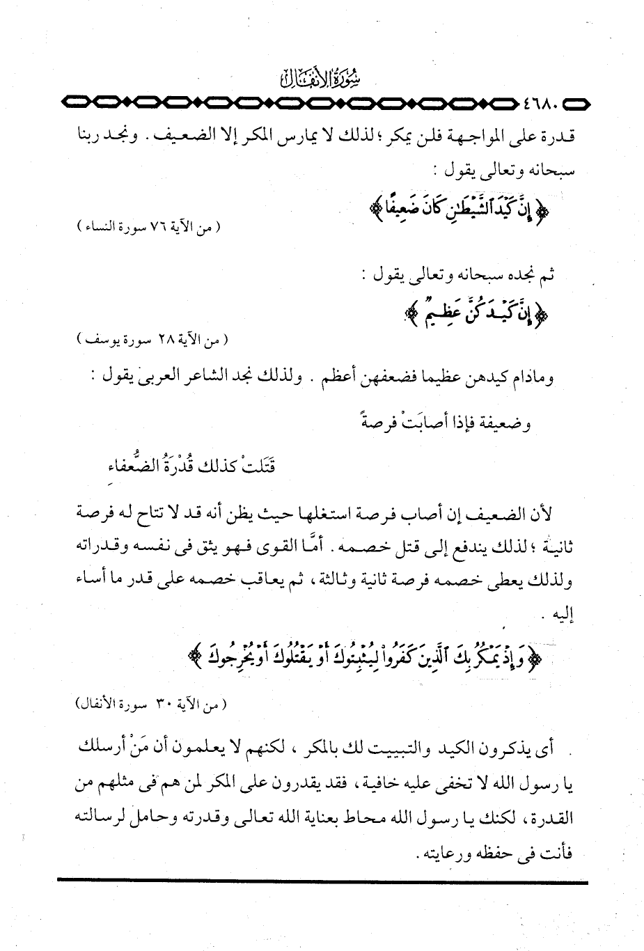 قدرة على المواجهة فلن يمكر؛ لذلك لا يمارس المكر إلا الضعيف. ونجد ربنا سبحانه وتعالى يقول: {إِنَّ كَيْدَ الشيطان كَانَ ضَعِيفاً} [النساء: 76] .
