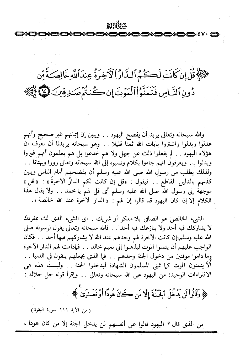 والله سبحانه وتعالى يريد أن يفضح اليهود. . ويبين إن إيمانهم غير صحيح وأنهم عدلوا وبدلوا واشتروا بآيات الله ثمنا قليلا. . وهو سبحانه يريدنا أن نعرف أن هؤلاء اليهود. . لم يفعلوا ذلك عن جهل ولا هم خُدعوا بل هم يعملون أنهم غيروا وبدلوا. . ويعرفون أنهم جاءوا بكلام ونسبوه إلى الله سبحانه وتعالى زورا وبهتانا. . ولذلك يطلب من رسول الله صَلَّى اللَّهُ عَلَيْهِ وَسَلَّم َ أن يفضحهم أمام الناس ويبين كذبهم بالدليل القاطع. . فيقول: {قُلْ إِن كَانَتْ لَكُمُ الدار الآخرة} : «قل» موجهة إلى رسول الله صَلَّى اللَّهُ عَلَيْهِ وَسَلَّم َ أي قل لهم يا محمد. . ولا يقال هذا الكلام إلا إذا كان اليهود قالوا إن لهم: «الدار الآخرة عند الله خالصة» .