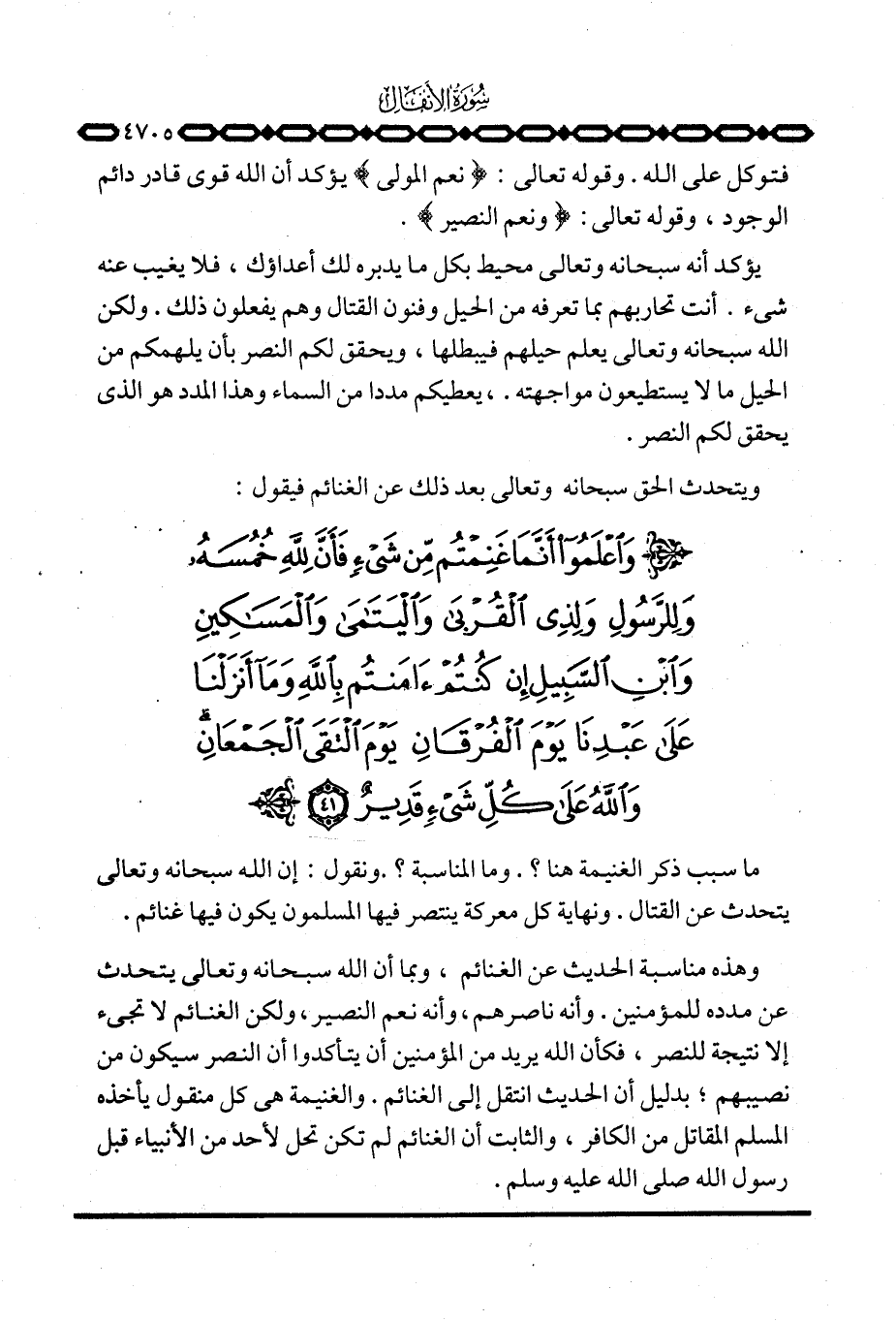 ويتحدث الحق سبحانه وتعالى بعد ذلك عن الغنائم فيقول: {واعلموا أَنَّمَا غَنِمْتُمْ مِّن شَيْءٍ ... }