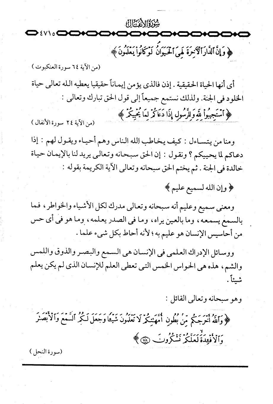 {استجيبوا للَّهِ وَلِلرَّسُولِ إِذَا دَعَاكُم لِمَا يُحْيِيكُمْ} [الأنفال: 42] .