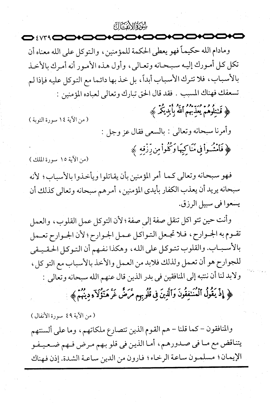 فهو سبحانه وتعالى كما أمر المؤمنين بأن يقاتلوا ويأخذوا بالأسباب؛ لأنه سبحانه يريد أن يعذب الكفار بأيدي المؤمنين، أمرهم سبحانه وتعالى كذلك أن يسعوا في سبيل الرزق.