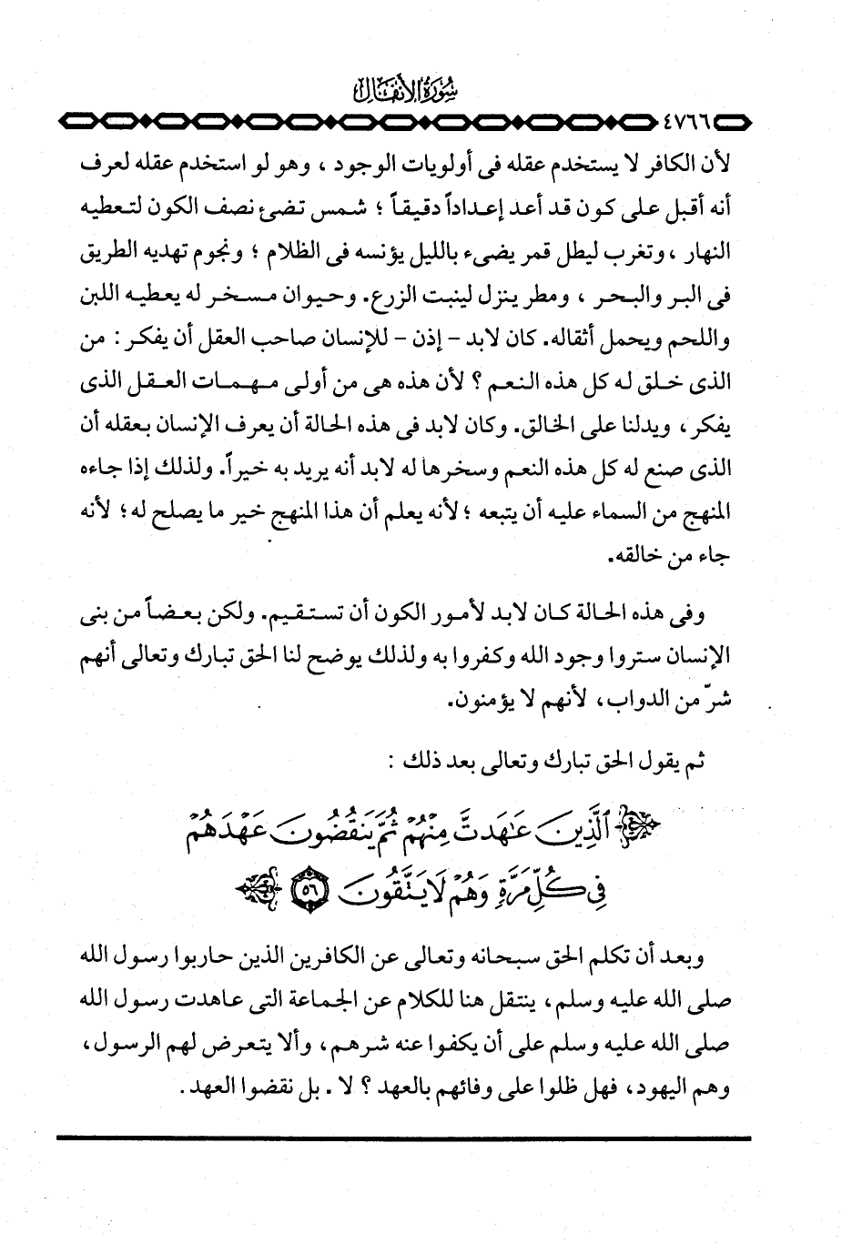 وبعد أن تكلم الحق سبحانه وتعالى عن الكافرين الذين حاربوا رسول الله صَلَّى اللَّهُ عَلَيْهِ وَسَلَّم َ، ينتقل هنا للكلام عن الجماعة التي عاهدت رسول الله صَلَّى اللَّهُ عَلَيْهِ وَسَلَّم َ على أن يكفوا عنه شرهم، وألا يتعرض لهم الرسول، وهم اليهود، فهل ظلوا على وفائهم بالعهد؟ لا. بل نقضوا العهد.