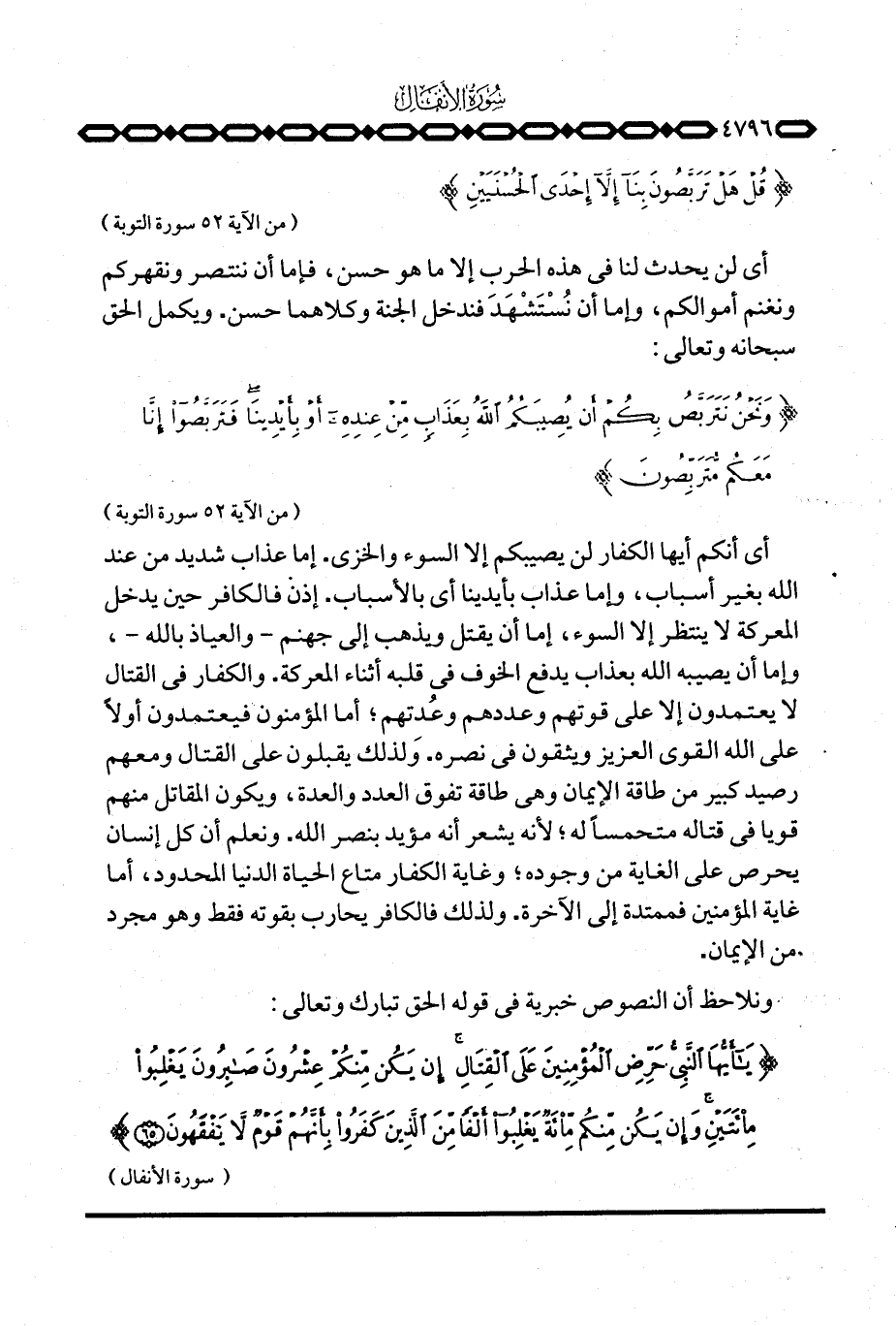 {ياأيها النبي حَرِّضِ المؤمنين عَلَى القتال إِن يَكُن مِّنكُمْ عِشْرُونَ صَابِرُونَ يَغْلِبُواْ مِئَتَيْنِ وَإِن يَكُنْ مِّنكُمْ مِّئَةٌ يغلبوا أَلْفاً مِّنَ الذين كَفَرُواْ بِأَنَّهُمْ قَوْمٌ لاَّ يَفْقَهُونَ} [الأنفال: 65] .