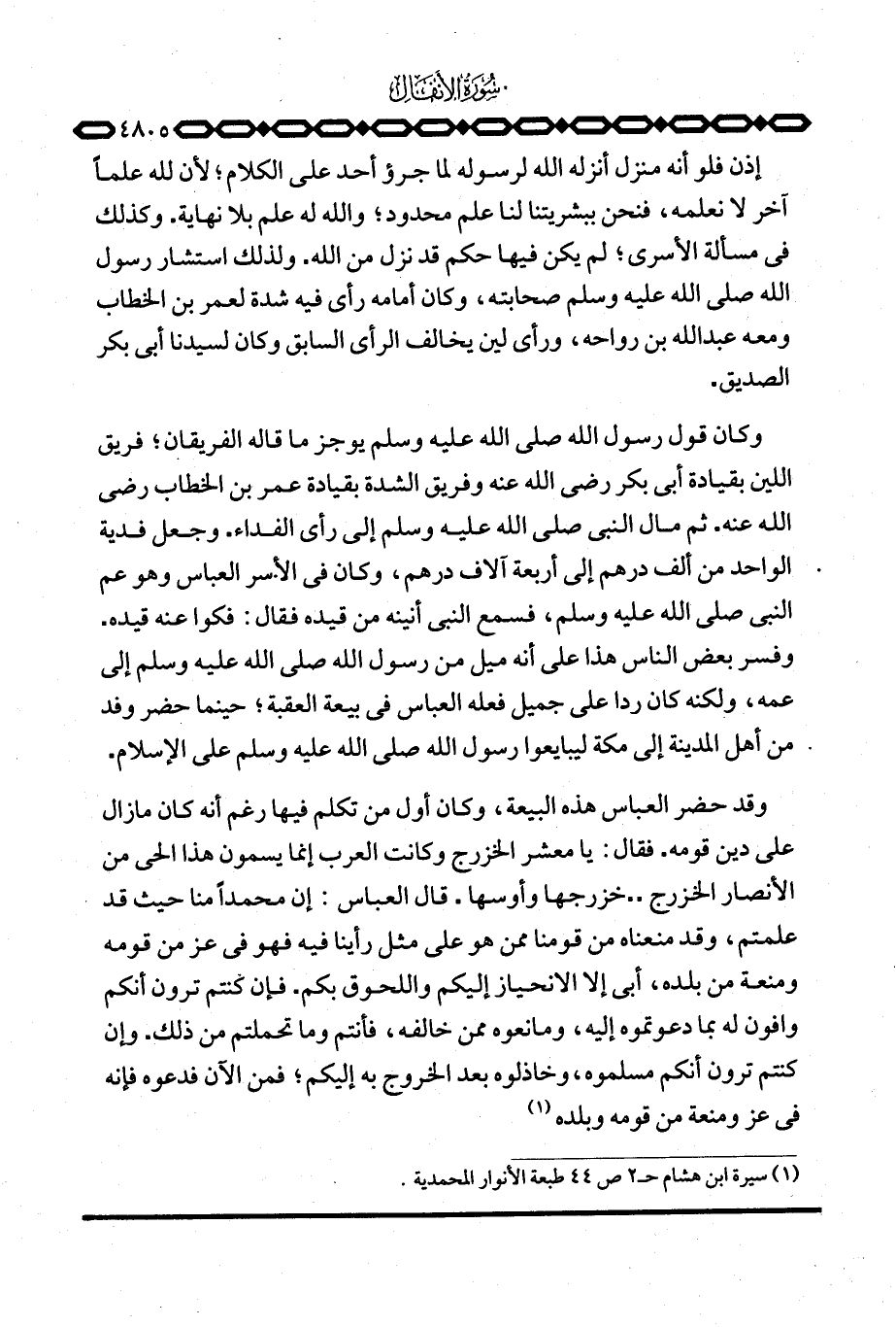 وقد حضر العباس هذه البيعة، وكان أول من تكلم فيه رغم أنه كان ما زال على دين قومه. فقال: يا معشر الخزرج وكانت العرب إنما يسمون هذا الحي من الأنصار الخزرج. . خزرجها وأوسها. قال العباس: إن محمداً منا حيث قد علمتم، وقد منعناه من قومنا ممن هو على مثل رأينا فيه فهو في عز من قومه ومنعة من بلده، أبى إلا الانحياز إليكم واللحوق بكم. فإن كنتم ترون أنكم وافون له بما دعوتموه إليه، ومانعوه ممن خالفه، فأنتم وما تحملتم من ذلك. وإن كنتم ترون أنكم مسلموه، وخاذلوه بعد الخروج به إليكم؛ فمن الآن فدعوه فإنه في عز ومنعة من قومه وبلده