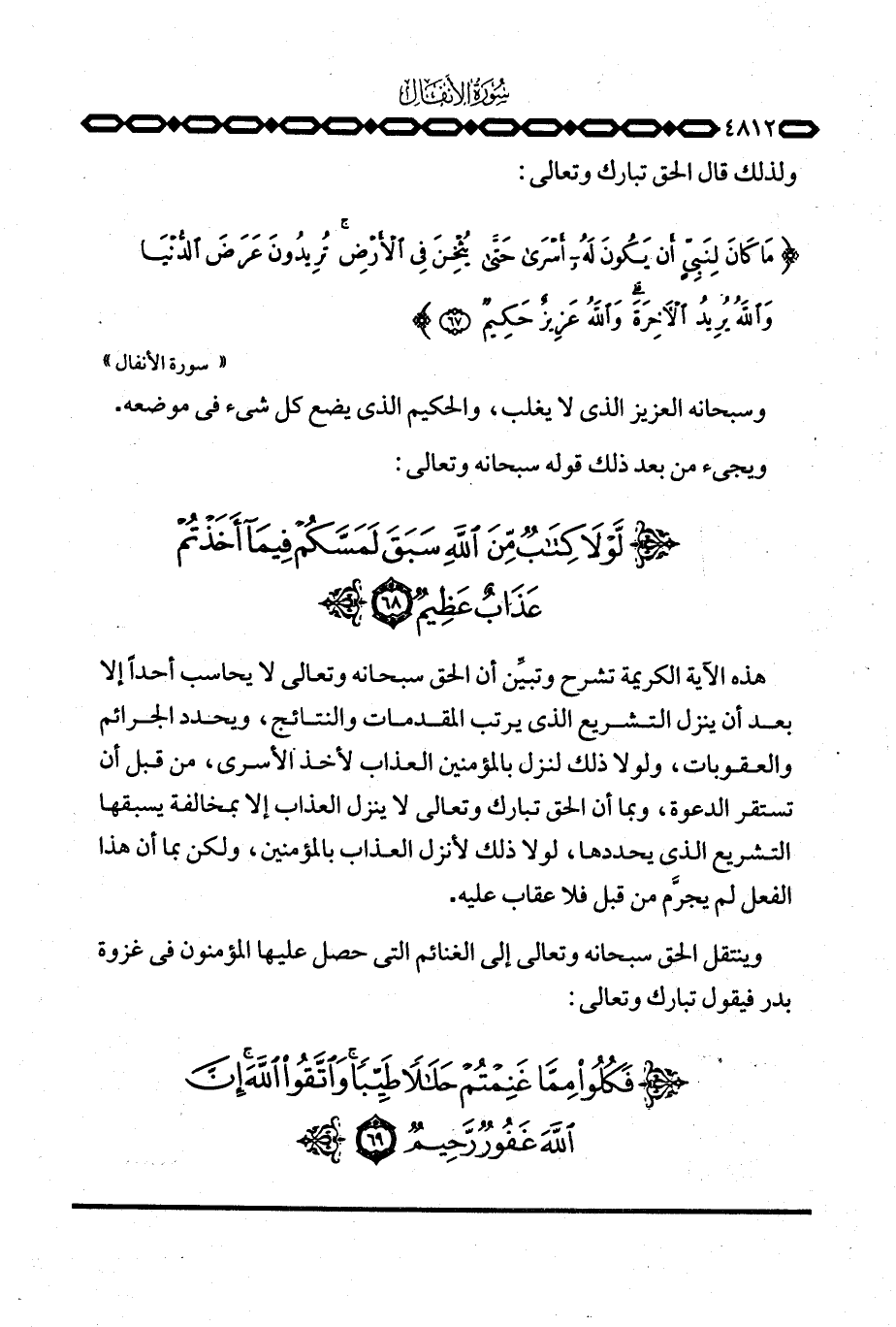 {مَا كَانَ لِنَبِيٍّ أَن يَكُونَ لَهُ أسرى حتى يُثْخِنَ فِي الأرض تُرِيدُونَ عَرَضَ الدنيا والله يُرِيدُ الآخرة والله عَزِيزٌ حَكِيمٌ} [الأنفال: 67] .