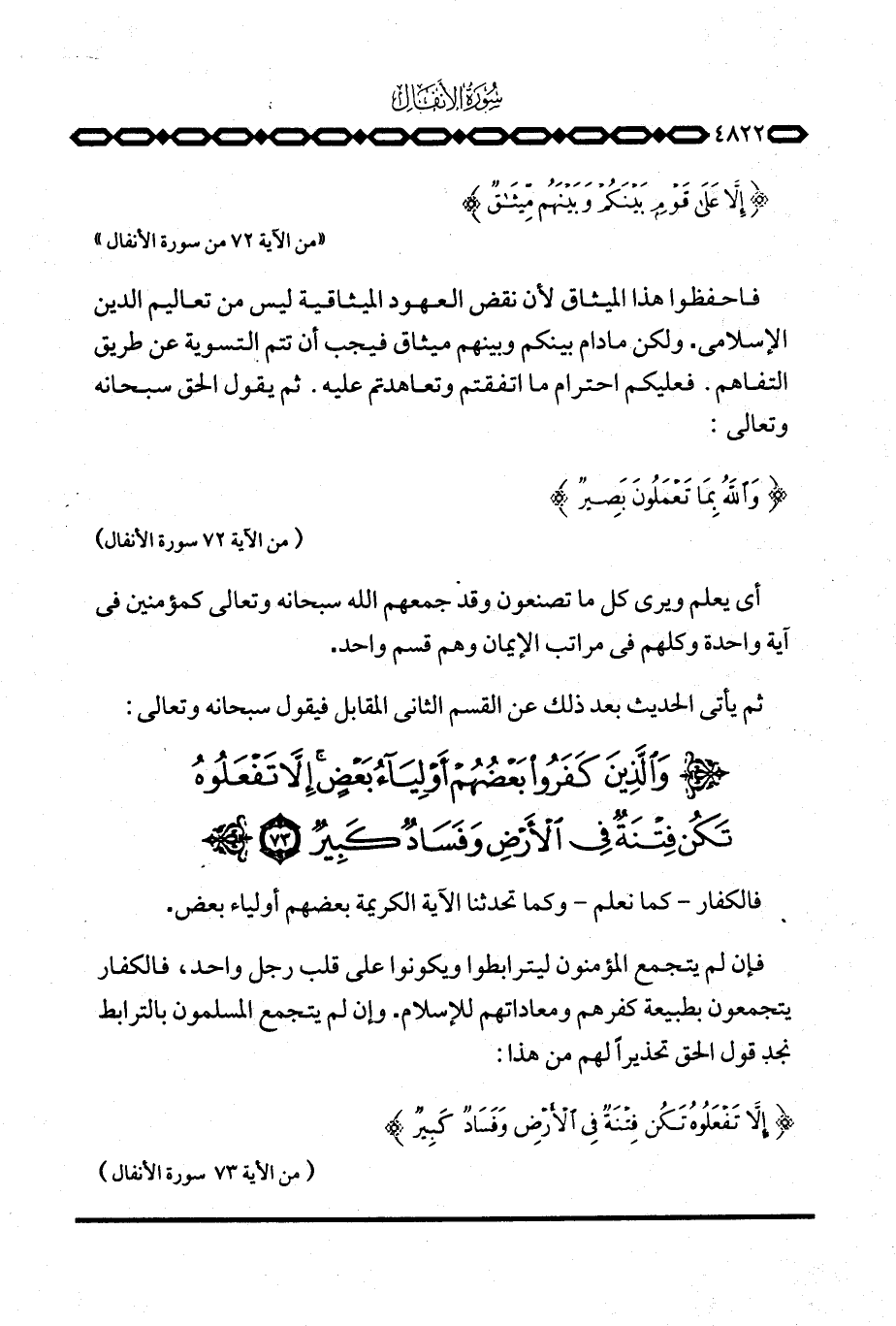 {إِلاَّ تَفْعَلُوهُ تَكُنْ فِتْنَةٌ فِي الأرض وَفَسَادٌ كَبِيرٌ} [الأنفال: 73] .