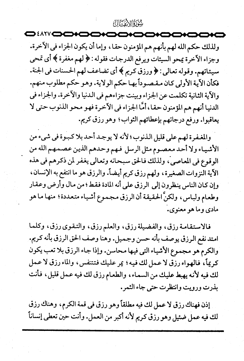 إذن فهناك رزق لا عمل لك فيه مطلقاً وهو رزق في قمة الكرم، وهناك رزق لك فيه عمل ضئيل وهو رزق كريم لأنه أكبر من العمل. وأنت حين تعطي إنساناً