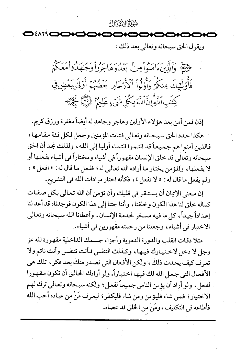 مثلا دقات القلب والدورة الدموية وأجزاء جسمك الداخلية مقهورة لله عَزَّ وَجَلَّ لا دخل لاختيارك فيها، وكذلك التنفس فأنت تتنفس وأنت نائم ولا تعرف كيف يحدث ذلك، ولكن الأفعال التي تصدر منك بعد فكر، تلك هي الأفعال التي جعل الله لك فيها اختياراً. ولو أرادك الخالق أن تكون مقهورا لفعل، ولو أراد أن يؤمن الناس جميعاً لفعل؛ ولكنه سبحانه وتعالى ترك لهم الاختيار؛ فمن شاء فليؤمن ومن شاء فليكفر؛ ليعرف مَنْ مِن عباده أحب الله فأطاعه في التكليف، ومَنْ مِن الخلق قد عصاه.