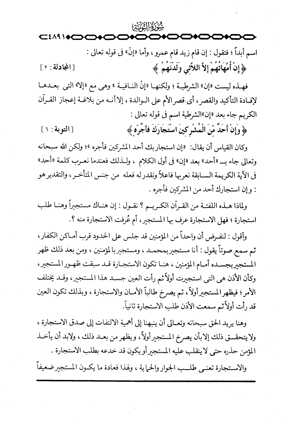 ولماذا هذه اللفتة من القرآن الكريم؟ نقول: إن هناك مستجيراً وهنا طلب استجارة؛ فهل الاستجارة عرف بها المستجير، أم عُرفت الاستجارة منه؟ .