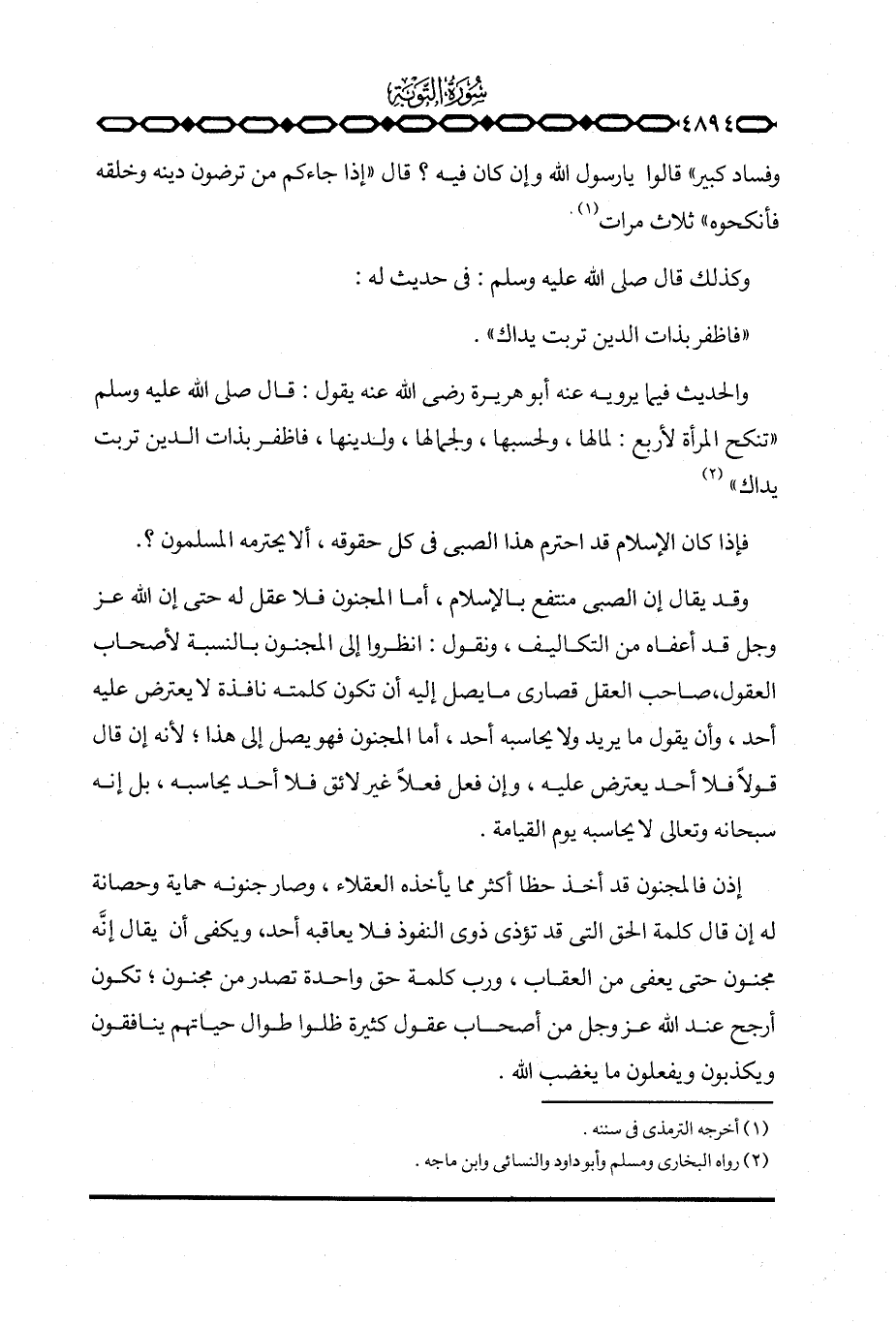 والحديث فيما يرويه عنه أبو هريرة رَضِيَ اللَّهُ عَنْه يقول: قال صَلَّى اللَّهُ عَلَيْهِ وَسَلَّم َ «تنكح المرأة لأربع: لمالها، ولحسبها، ولجمالها، ولدينها، فاظفر بذات الدين تربت يداك» .