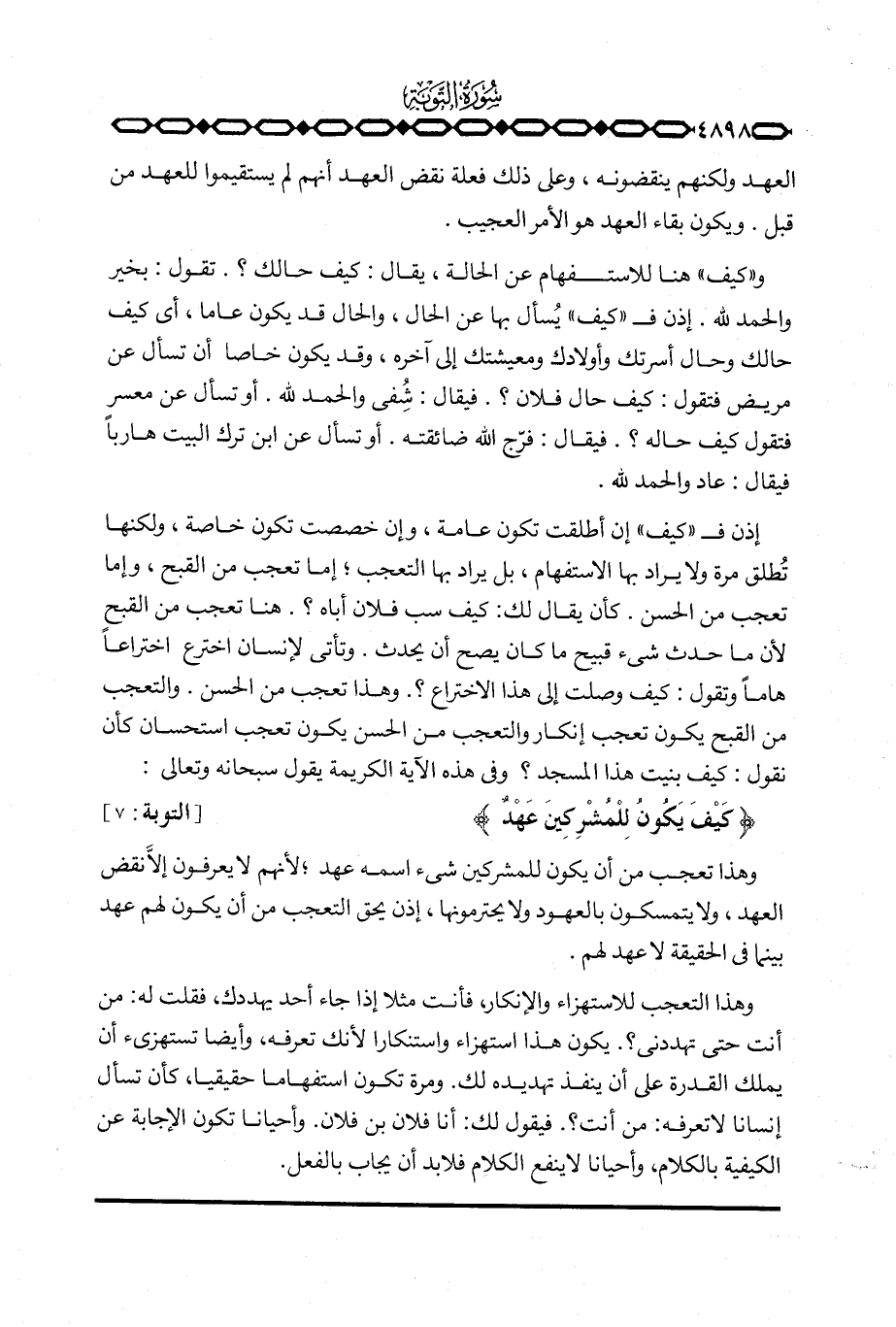 {كَيْفَ يَكُونُ لِلْمُشْرِكِينَ عَهْدٌ} [التوبة: 7] .