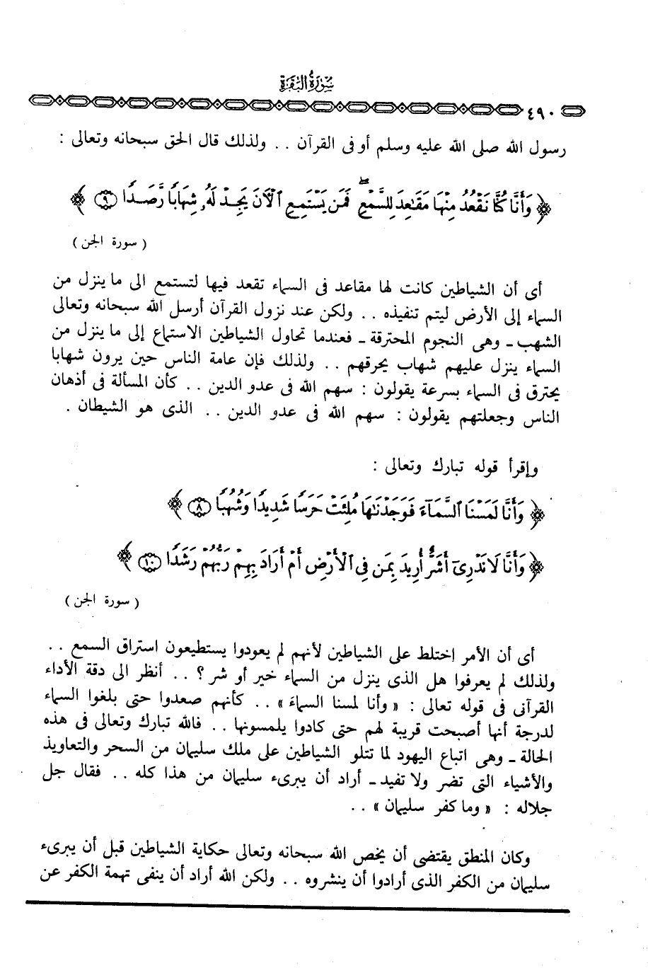 رسول الله صَلَّى اللَّهُ عَلَيْهِ وَسَلَّم َ أو في القرآن. . ولذلك قال الحق سبحانه وتعالى: {وَأَنَّا كُنَّا نَقْعُدُ مِنْهَا مَقَاعِدَ لِلسَّمْعِ فَمَن يَسْتَمِعِ الآن يَجِدْ لَهُ شِهَاباً رَّصَداً} [الجن: 9]