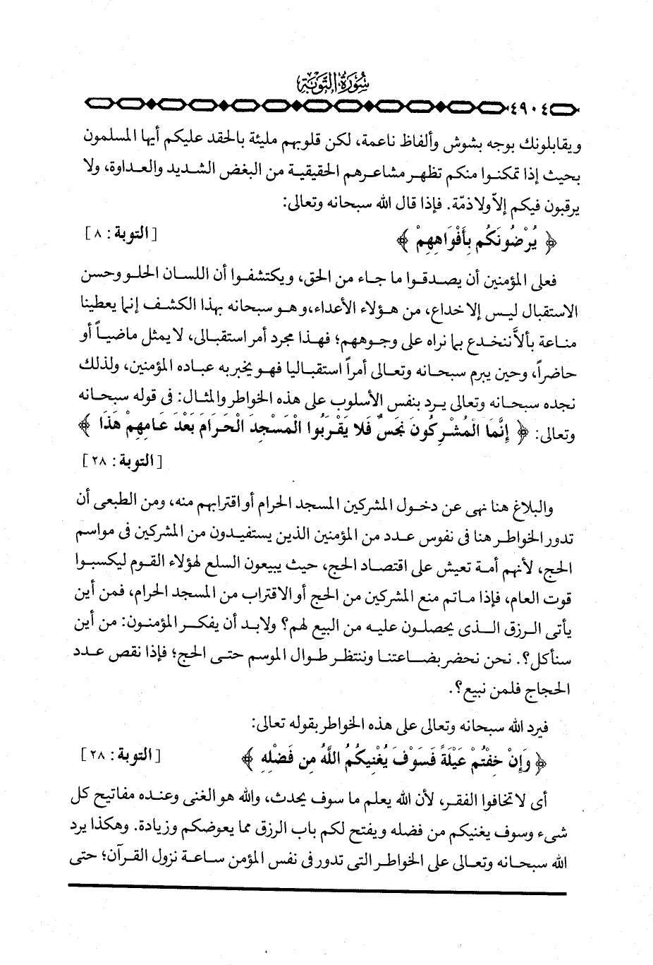 فيرد الله سبحانه وتعالى على هذه الخواطر بقوله تعالى: {وَإِنْ خِفْتُمْ عَيْلَةً فَسَوْفَ يُغْنِيكُمُ الله مِن فَضْلِهِ} [التوبة: 28] .