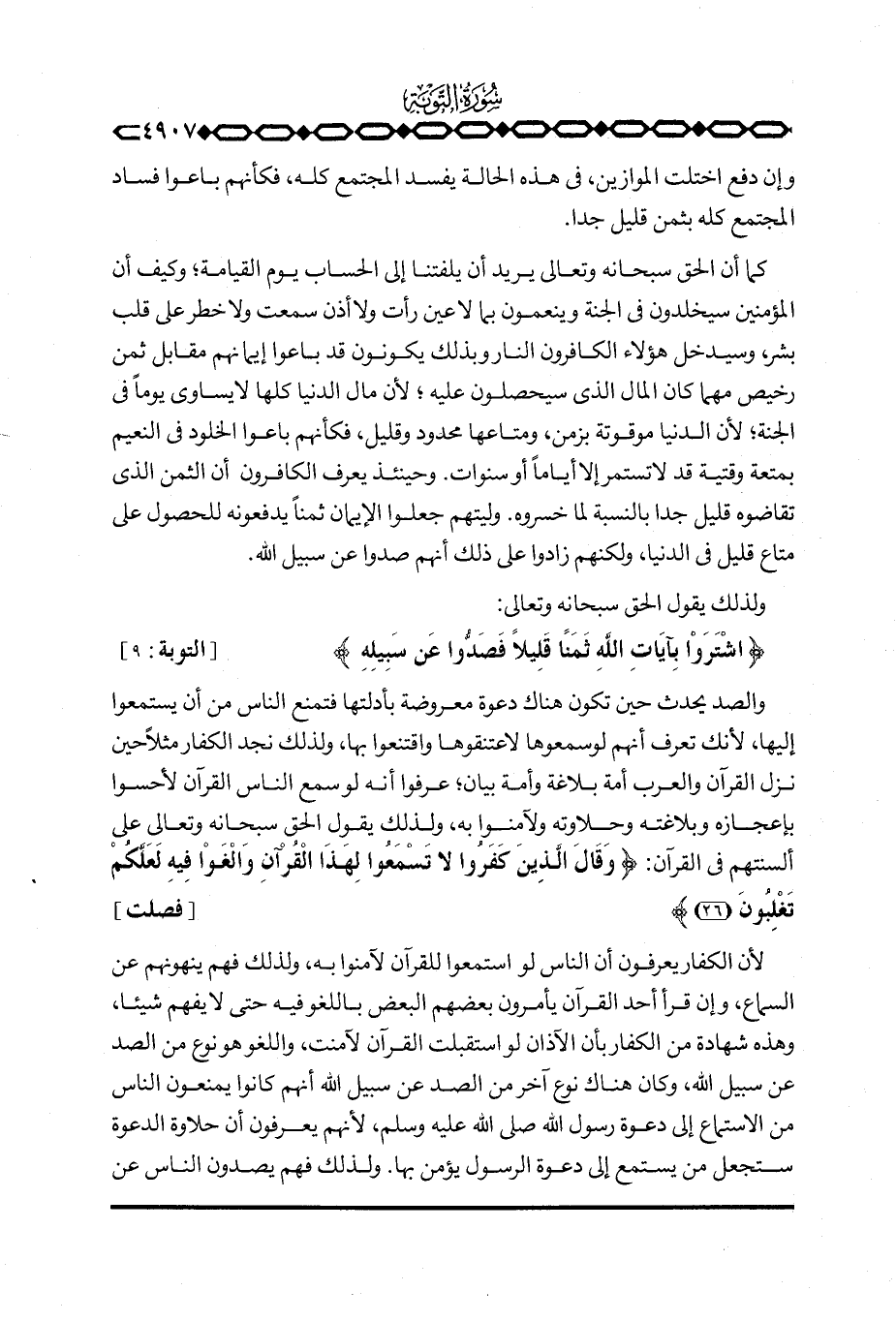 {اشتروا بِآيَاتِ الله ثَمَناً قَلِيلاً فَصَدُّواْ عَن سَبِيلِهِ} [التوبة: 9] .