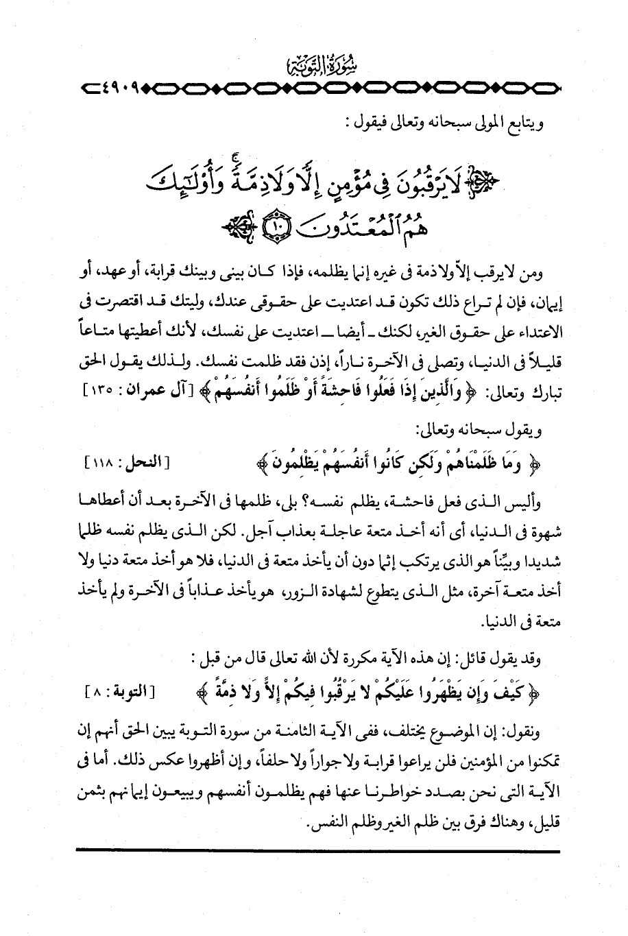ويتابع المولى سبحانه وتعالى فيقول: {لاَ يَرْقُبُونَ فِي مُؤْمِنٍ إِلاًّ وَلاَ ذِمَّةً ... }