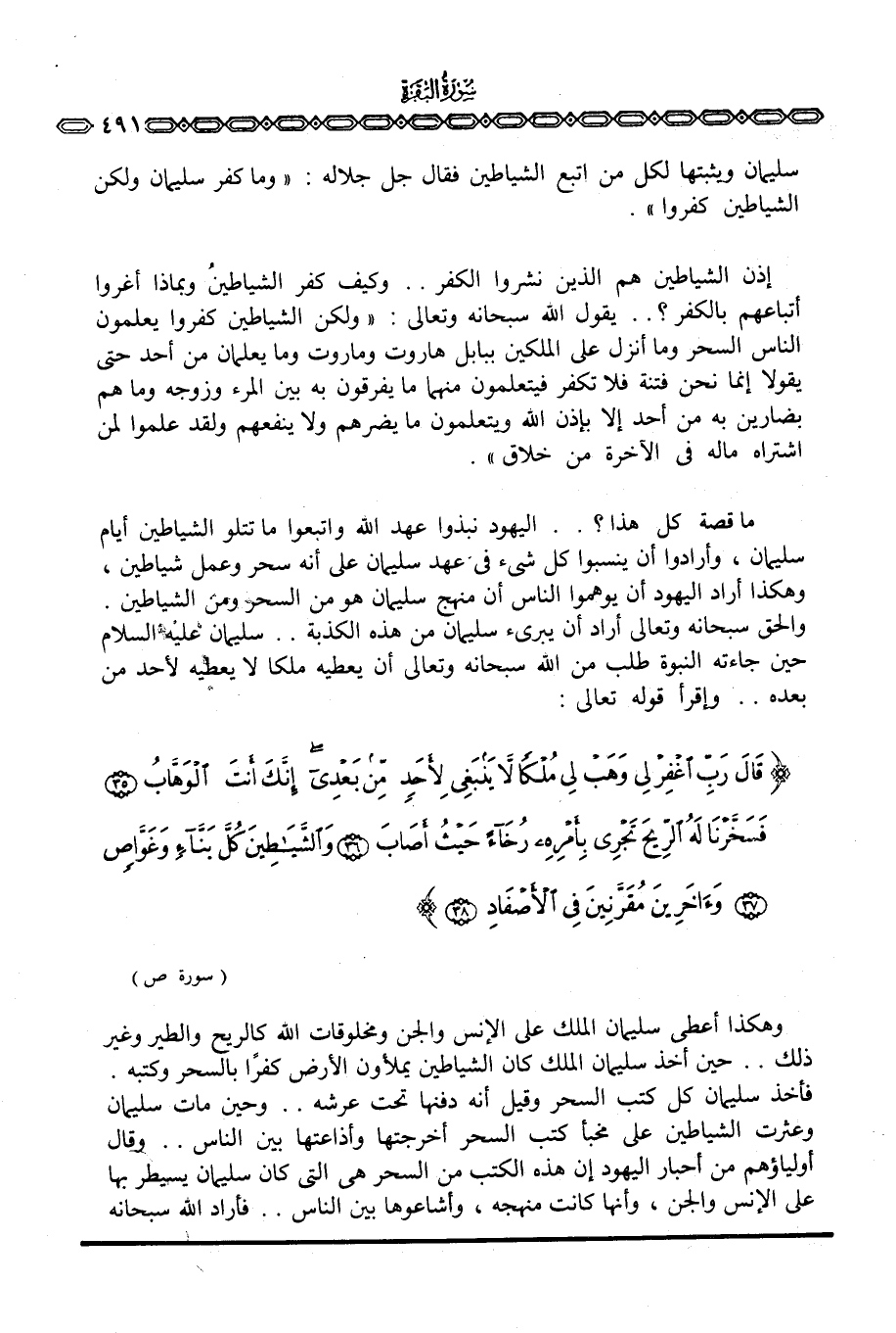 سليمان ويثبتها لكل من اتبع الشياطين فقال جل جلاله: {وَمَا كَفَرَ سُلَيْمَانُ ولكن الشياطين كَفَرُواْ} .
