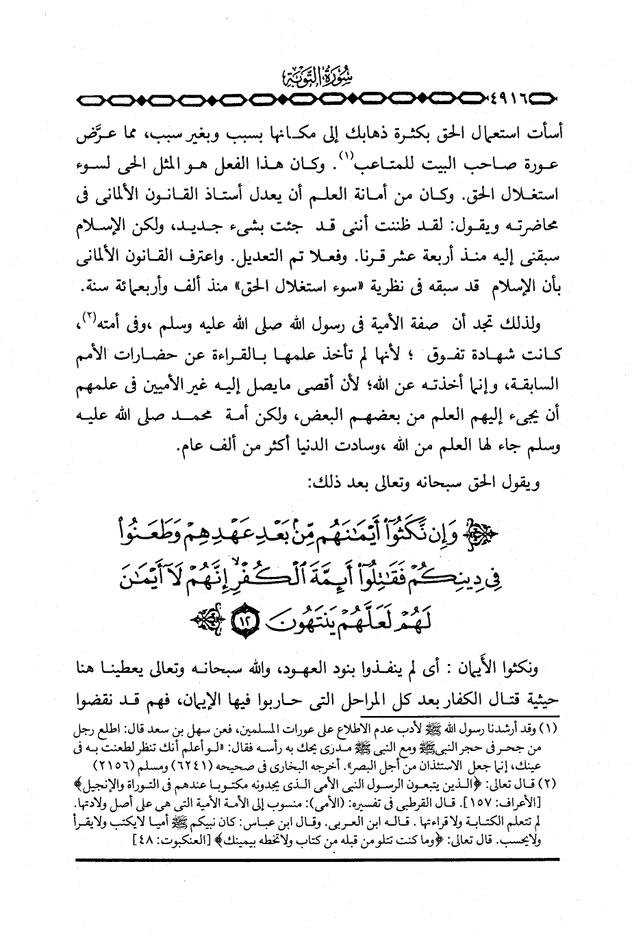 أسأت استعمال الحق بكثرة ذهابك إلى مكانها بسبب وبغير سبب، مما عرَّض عورة صاحب البيت للمتاعب. وكان هذا الفعل هو المثل الحي لسوء استغلال الحق. وكان من أمانة العلم أن يعدل أستاذ القانون الألماني في محاضرته ويقول: لقد ظننت أنني قد جئت بشيء جديد، ولكن الإسلام سبقني إليه منذ أربعة عشر قرنا. وفعلا تم التعديل. واعترف القانون الألماني بأن الإسلام قد سبقه في نظرية «سوء استغلال الحق» منذ ألف وأربعمائة سنة.