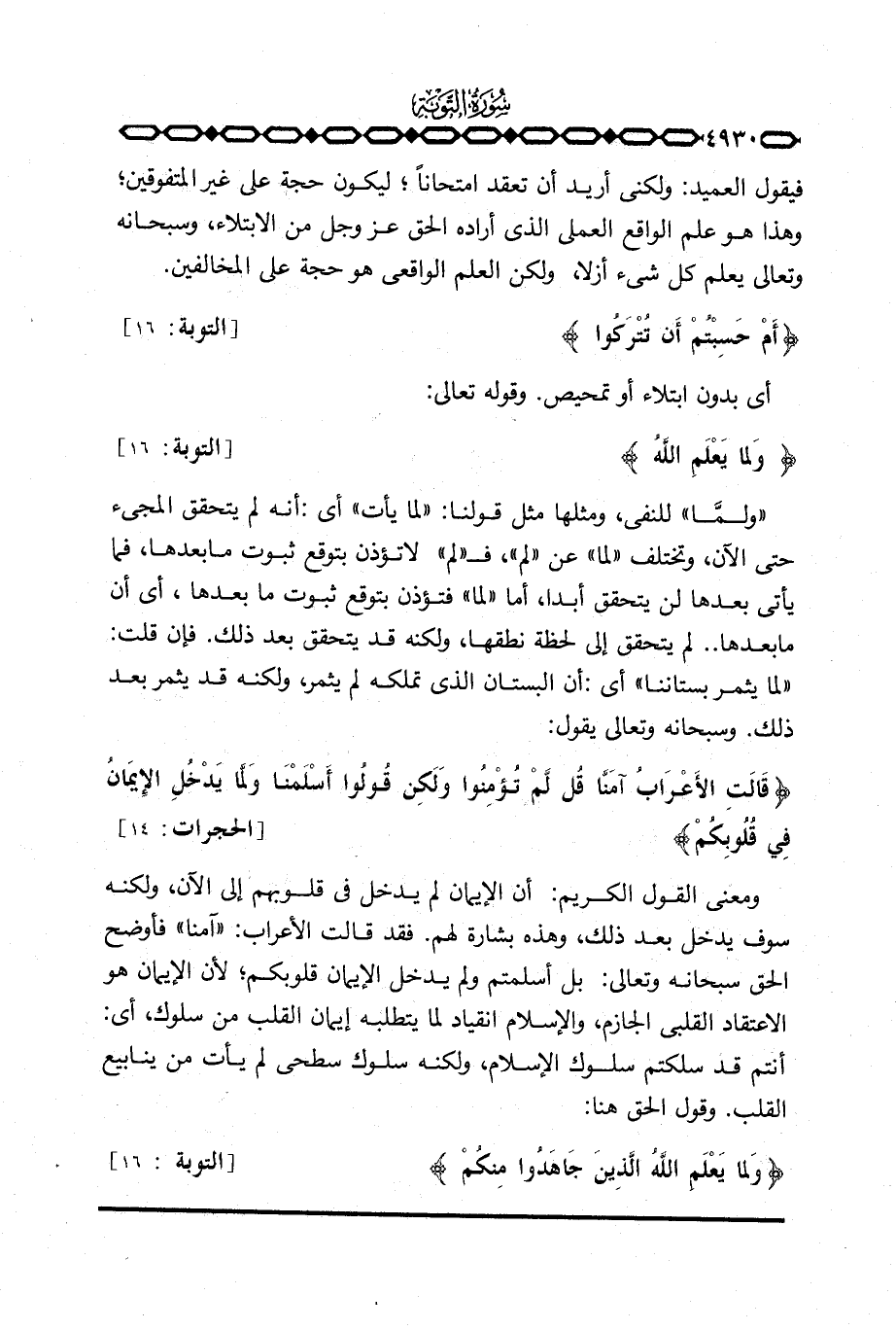 {وَلَمَّا يَعْلَمِ الله} [التوبة: 16] .