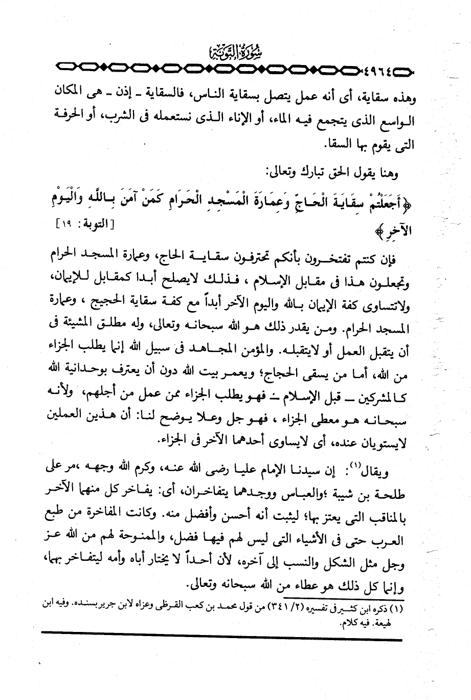 {أَجَعَلْتُمْ سِقَايَةَ الحاج وَعِمَارَةَ المسجد الحرام كَمَنْ آمَنَ بالله واليوم الآخر} [التوبة: 19] .