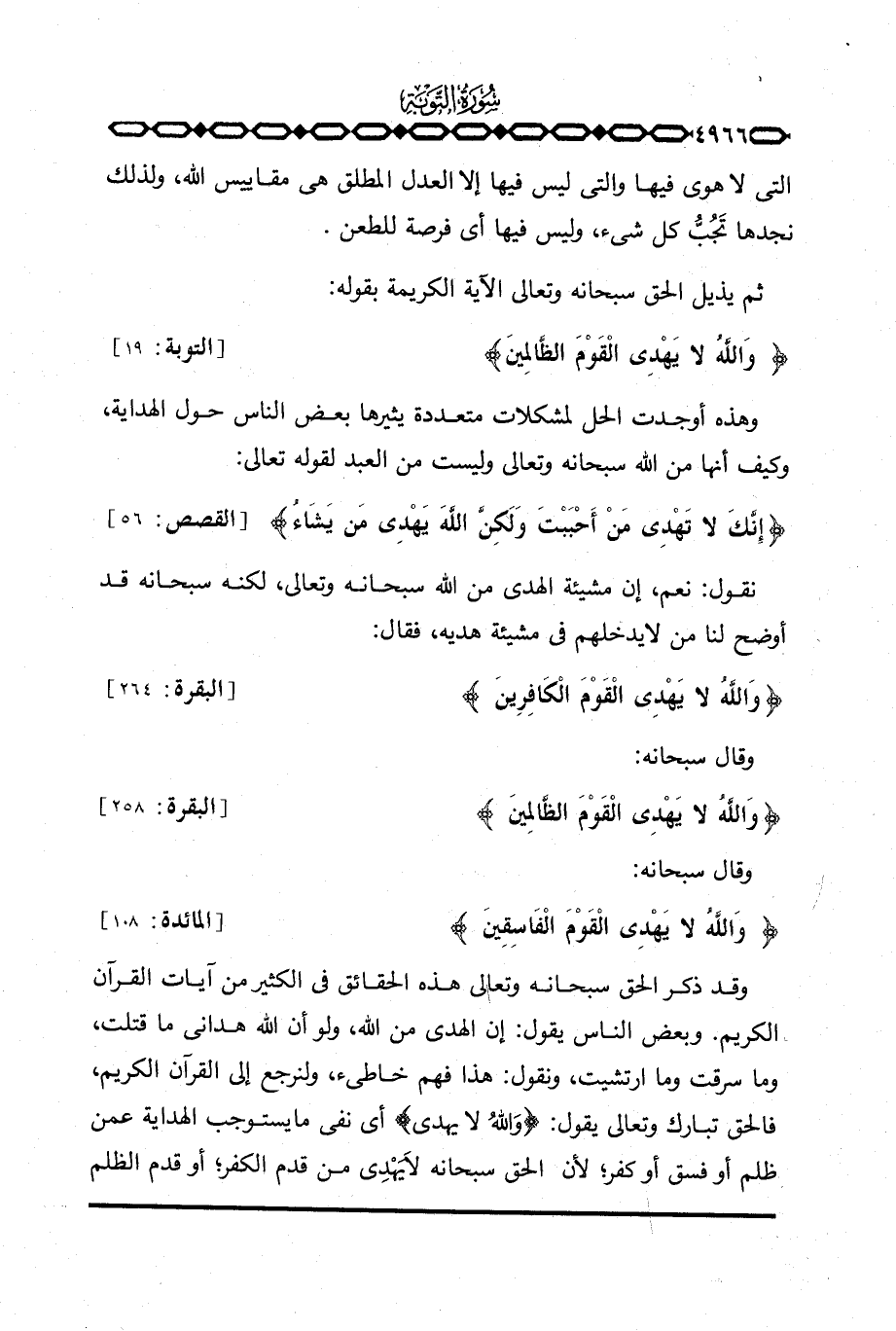 {والله لاَ يَهْدِي القوم الظالمين} [التوبة: 19] .