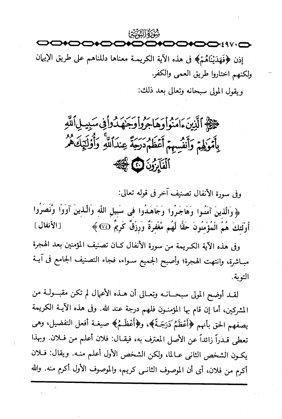 ويقول المولى سبحانه وتعالى بعد ذلك: {الذين آمَنُواْ وَهَاجَرُواْ وجاهدوا فِي سَبِيلِ الله بِأَمْوَالِهِمْ وَأَنْفُسِهِمْ ... }