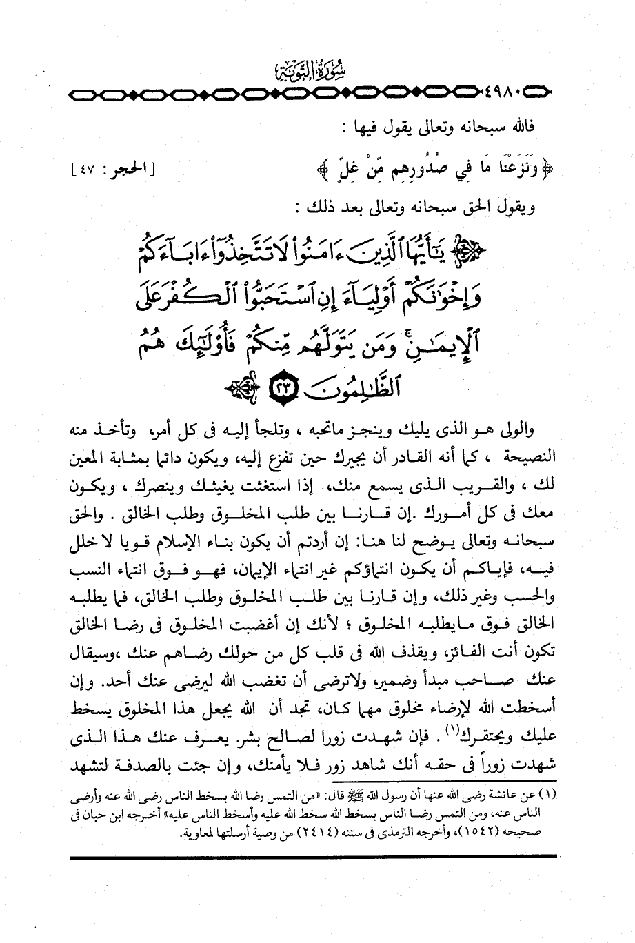 فالله سبحانه وتعالى يقول فيها: {وَنَزَعْنَا مَا فِي صُدُورِهِم مِّنْ غِلٍّ} [الحجر: 47] .