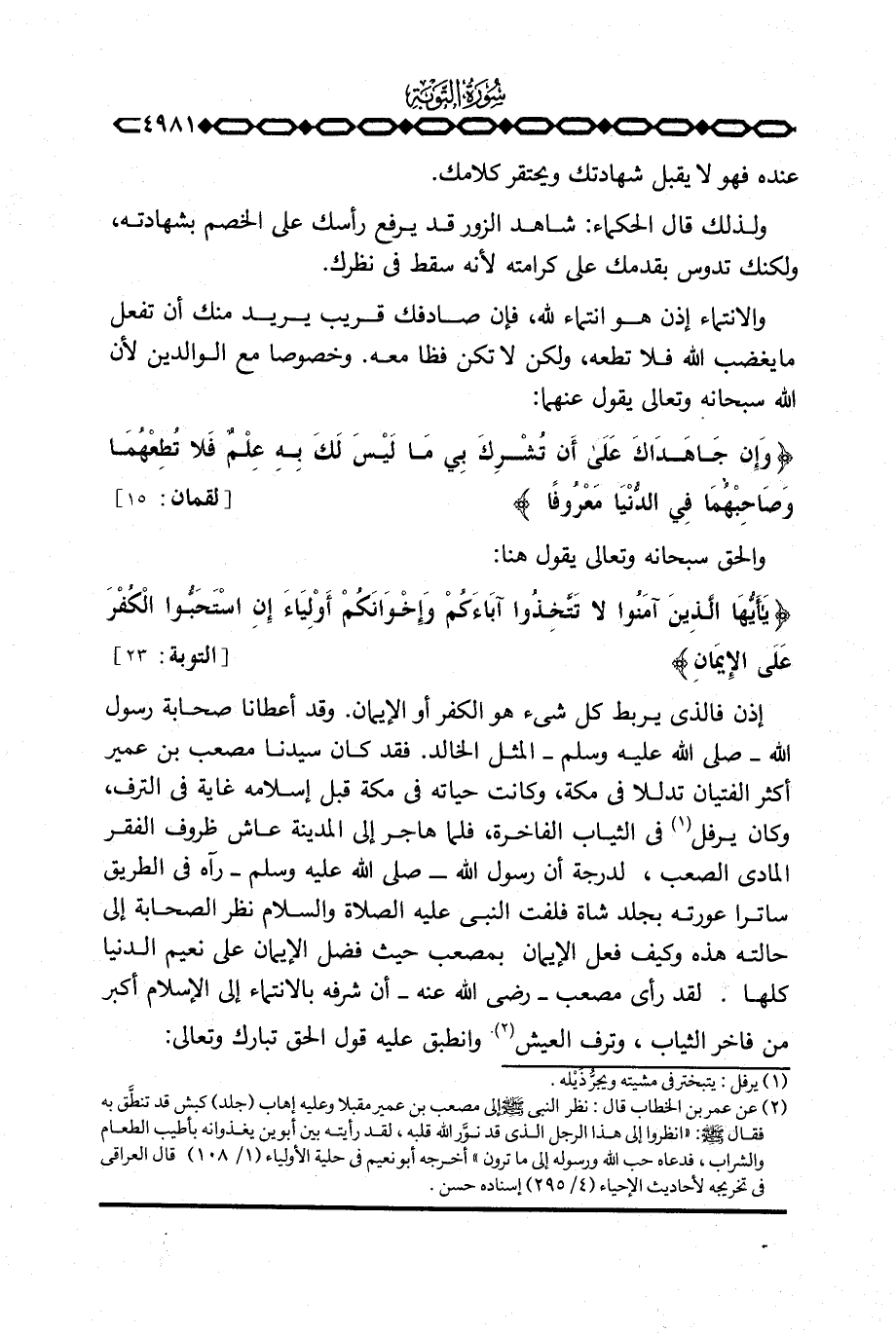{ياأيها الذين آمَنُواْ لاَ تتخذوا آبَآءَكُمْ وَإِخْوَانَكُمْ أَوْلِيَآءَ إِنِ استحبوا الكفر عَلَى الإيمان} [التوبة: 23] .