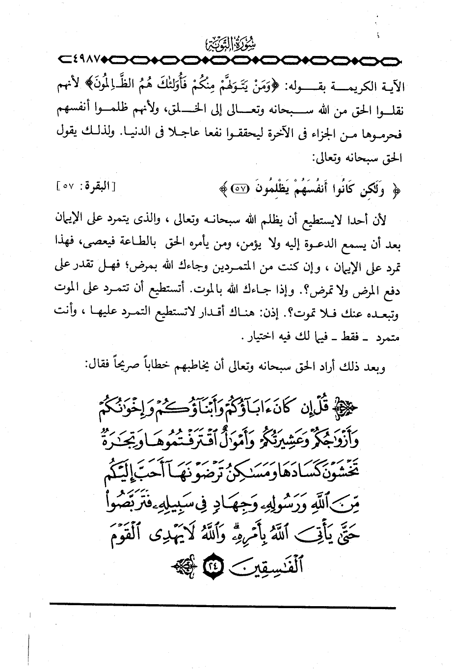 وبعد ذلك أراد الحق سبحانه وتعالى أن يخاطبهم خطاباً صريحاً فقال: {قُلْ إِن كَانَ آبَاؤُكُمْ وَأَبْنَآؤُكُمْ وَإِخْوَانُكُمْ وَأَزْوَاجُكُمْ وَعَشِيرَتُكُمْ ... }