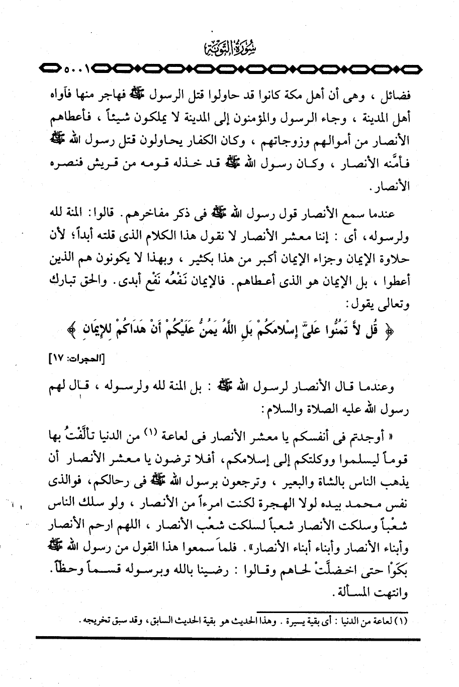 عندما سمع الأنصار قول رسول الله صَلَّى اللَّهُ عَلَيْهِ وَسَلَّم َ في ذكر مفاخرهم. قالوا: المنة لله والرسوله، أي: إننا معشر الأنصار لا نقول هذا الكلام الذي قلته أبداً؛ لأن حلاوة الإيمان وجزاء الإيمان أكبر من هذا بكثير، وبهذا لا يكونون هم الذين أعطوا، بل الإيمان هو الذي أعطاهم. فالإيمان نَفْعُه نَفْع أبدي. والحق تبارك وتعالى يقول: {قُل لاَّ تَمُنُّواْ عَلَيَّ إِسْلاَمَكُمْ بَلِ الله يَمُنُّ عَلَيْكُمْ أَنْ هَداكُمْ للإيمان} [الحجرات: 17] .
