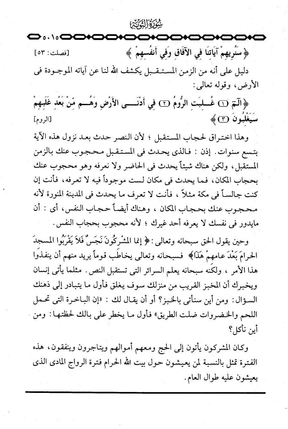 وحين يقول الحق سبحانه وتعالى: {إِنَّمَا المشركون نَجَسٌ فَلاَ يَقْرَبُواْ المسجد الحرام بَعْدَ عَامِهِمْ هذا} فسبحانه وتعالى يخاطب قوماً يريد منهم أن ينفذوا هذا الأمر، ولكنه سبحانه يعلم السرائر التي تستقبل النص. مثلما يأتي إنسان ويخبرك أن المخبز القريب من منزلك سوف يغلق فأول ما يتبادر إلى ذهنك السؤال: ومن أين سنأتي بالخبز؟ أو أن يقال لك: «إن الباخرة التي تحمل اللحم والخضروات ضلت الطريق» فأول ما يخطر على بالك لحظتها: ومن أين نأكل؟