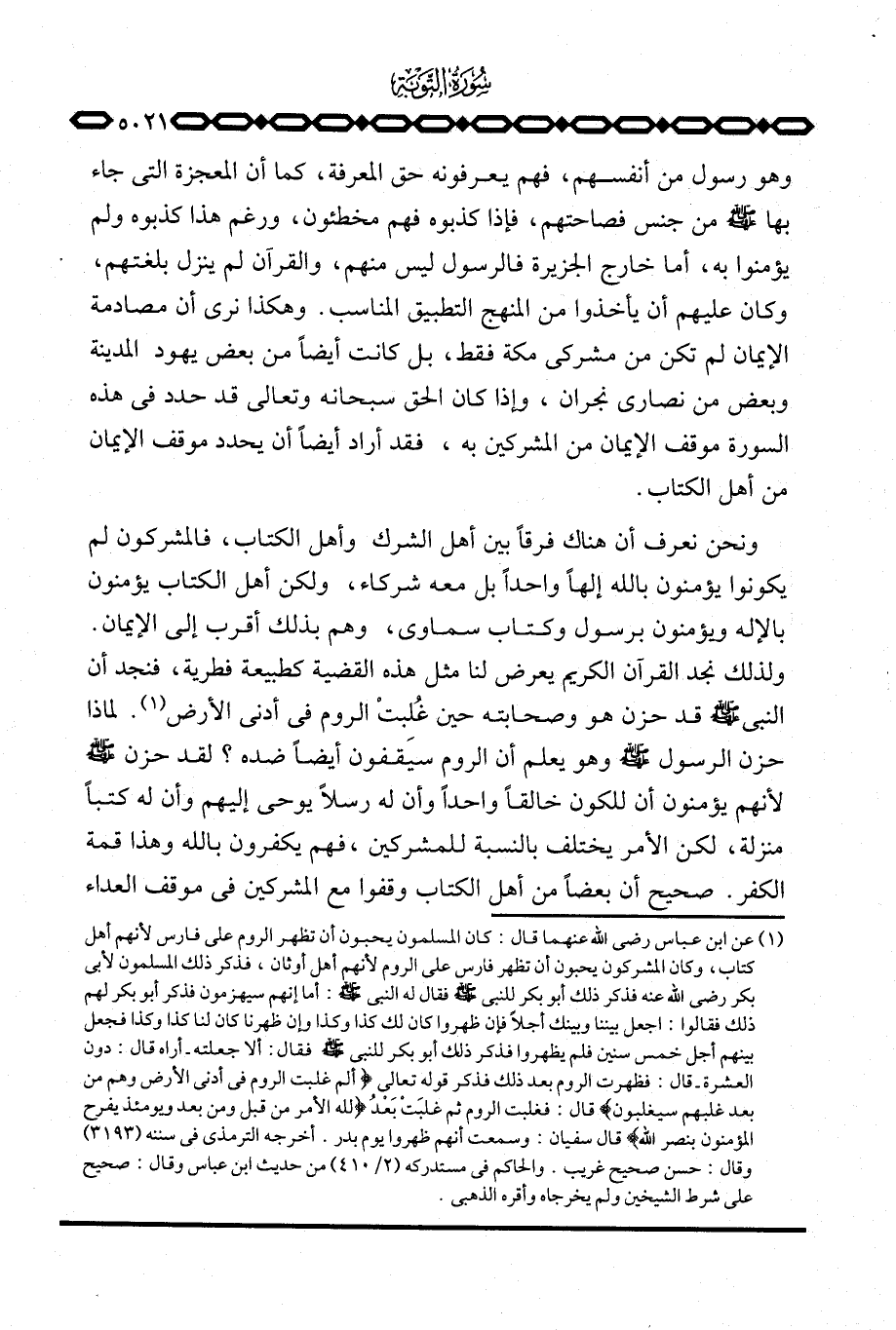 ونحن نعرف أن هناك فرقاً بين أهل الشرك وأهل الكتاب، فالمشركون لم يكونوا يؤمنون بالله إلهاً واحداً بل معه شركاء، ولكن أهل الكتاب يؤمنون بالإله ويؤمنون برسول وكتاب سماوي، وهم بذلك أقرب إلى الإيمان. ولذلك نجد القرآن الكريم يعرض لنا مثل هذه القضية كطبيعة فطرية، فنجد أن النبي صَلَّى اللَّهُ عَلَيْهِ وَسَلَّم َ قد حزن هو وصحابته حين غُلِبتْ الروم في أدنى الأرض. لماذا حزن الرسول صَلَّى اللَّهُ عَلَيْهِ وَسَلَّم َ وهو يعلم أن الروم سيقفون أيضاً ضده؟ لقد حزن صَلَّى اللَّهُ عَلَيْهِ وَسَلَّم َ لأنهم يؤمنون أن للكون خالقاً واحداً وأن له رسلاً يوحي إليهم وأن له كتباً منزلة، لكن الأمر يختلف بالنسبة للمشركين، فهم يكفرون بالله وهذا قمة الكفر. صحيح أن بعضاً من أهل الكتاب وقفوا مع المشركين في موقف العداء